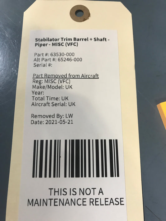 Stabilator Trim Barrel + Shaft - Piper - MISC (VFC)
