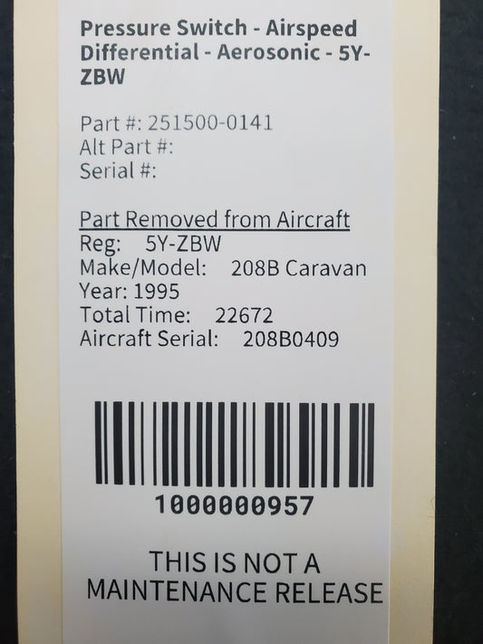 Pressure Switch - Airspeed Differential - Aerosonic - 5H-NWA
