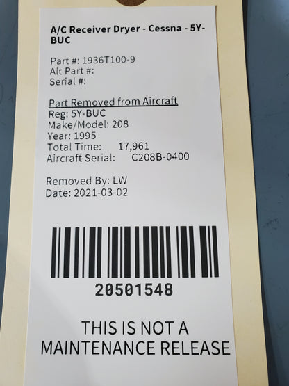A/C Receiver Dryer - Cessna - 5Y-BUC