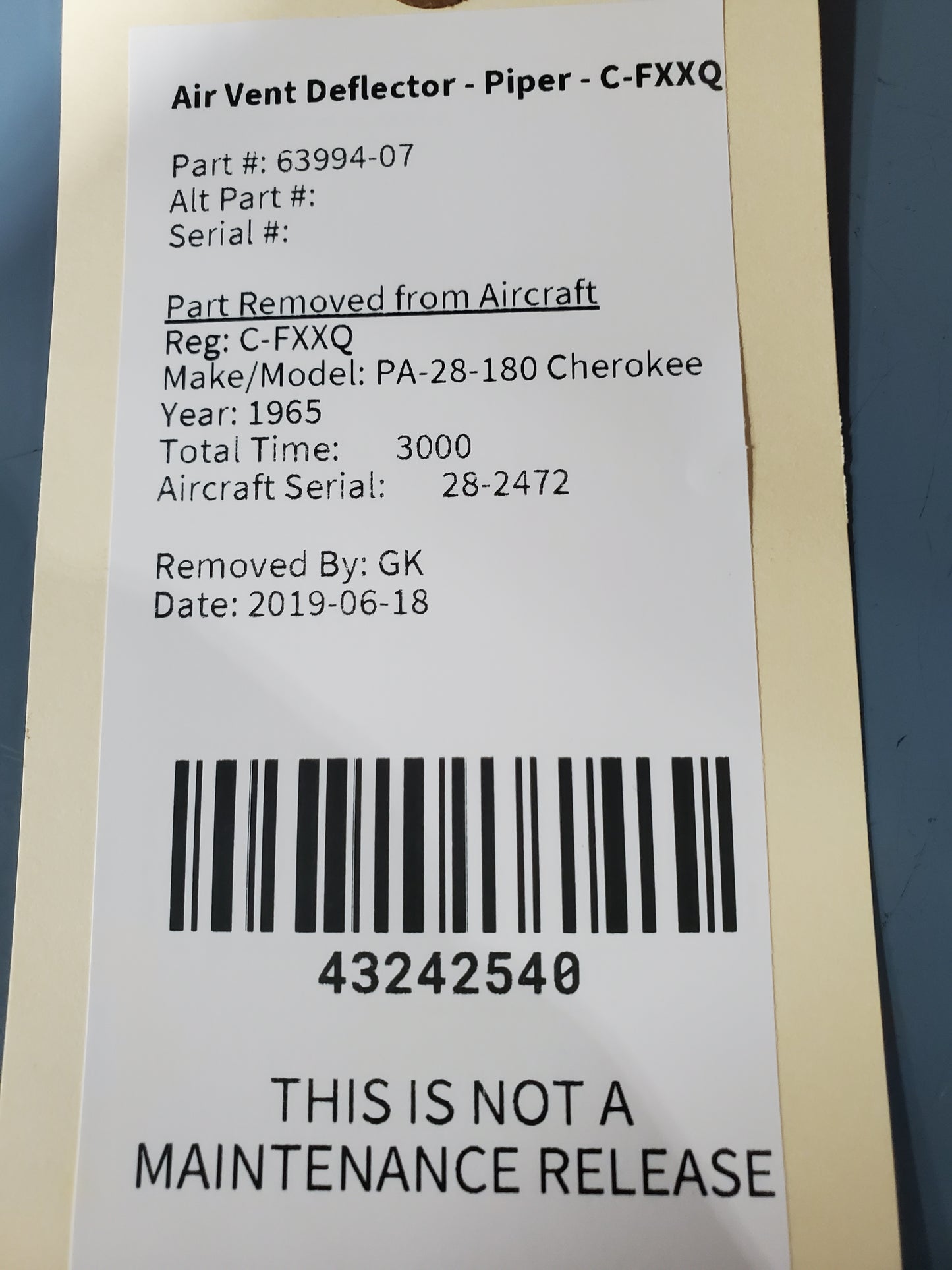 Air Vent Deflector - Piper - C-FXXQ