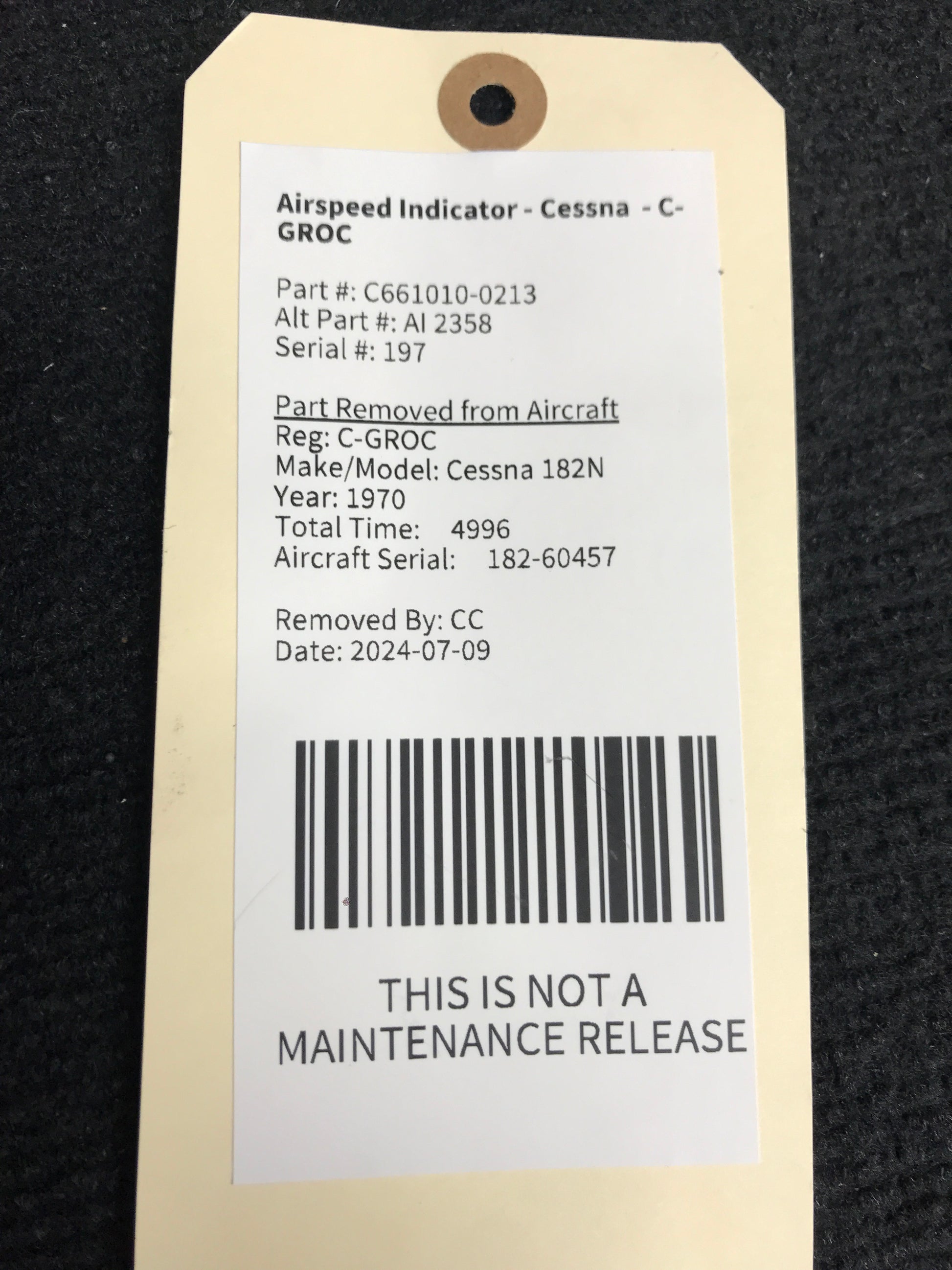 - Aircraft Serial Number: 182-60457