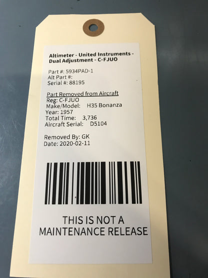 Altimeter - United Instruments - Dual Adjustment - C-FJUO