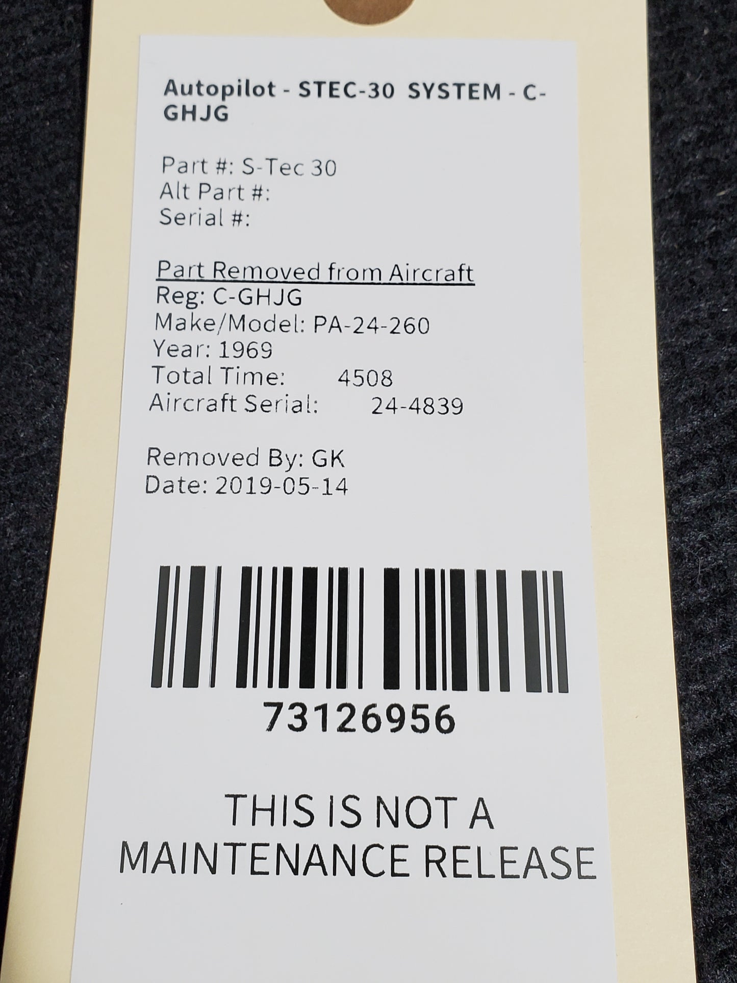 - Removed from Piper PA-24-260C.