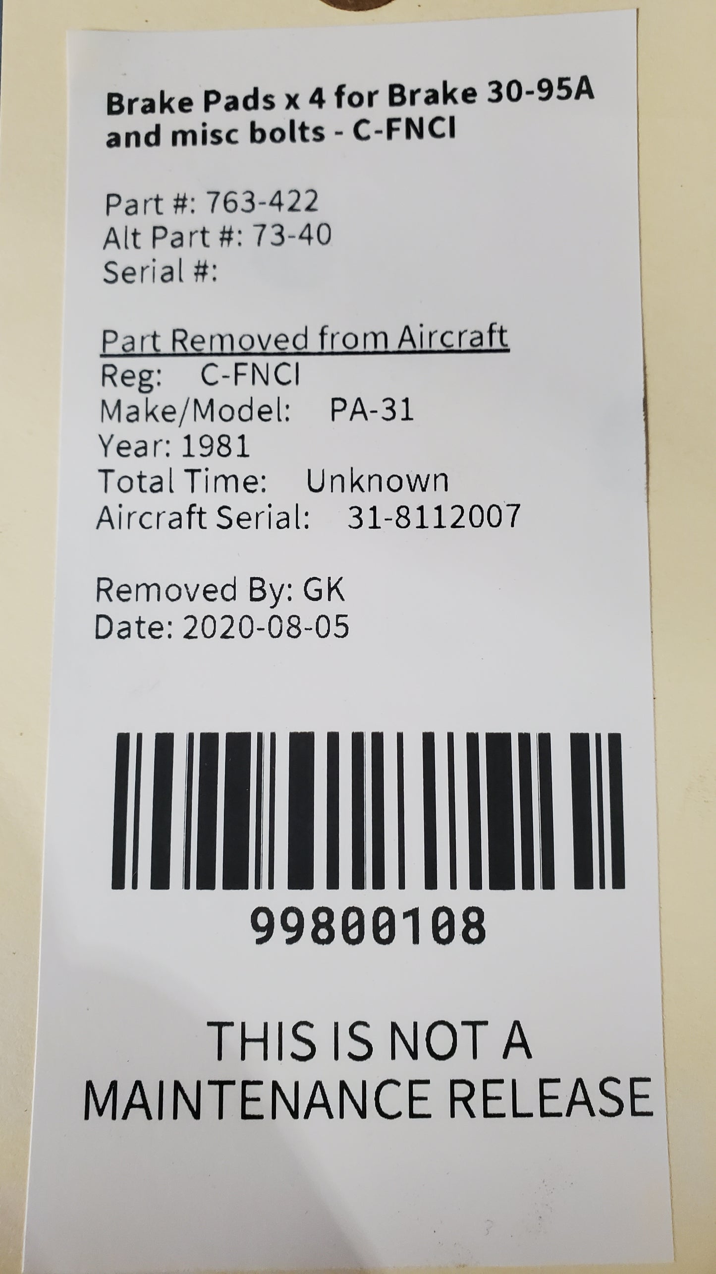 - Aircraft Reg: C-FNCI