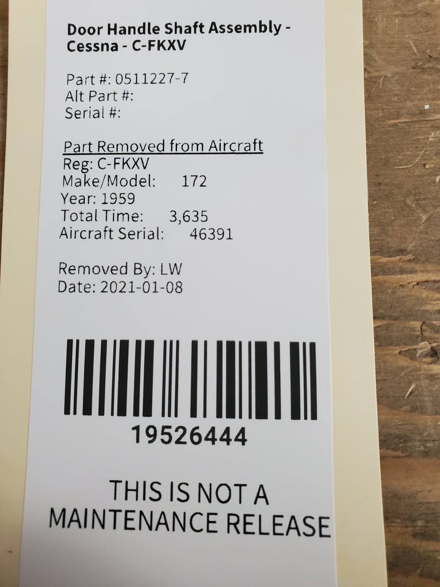 Door Handle Shaft Assembly - Cessna - C-FKXV