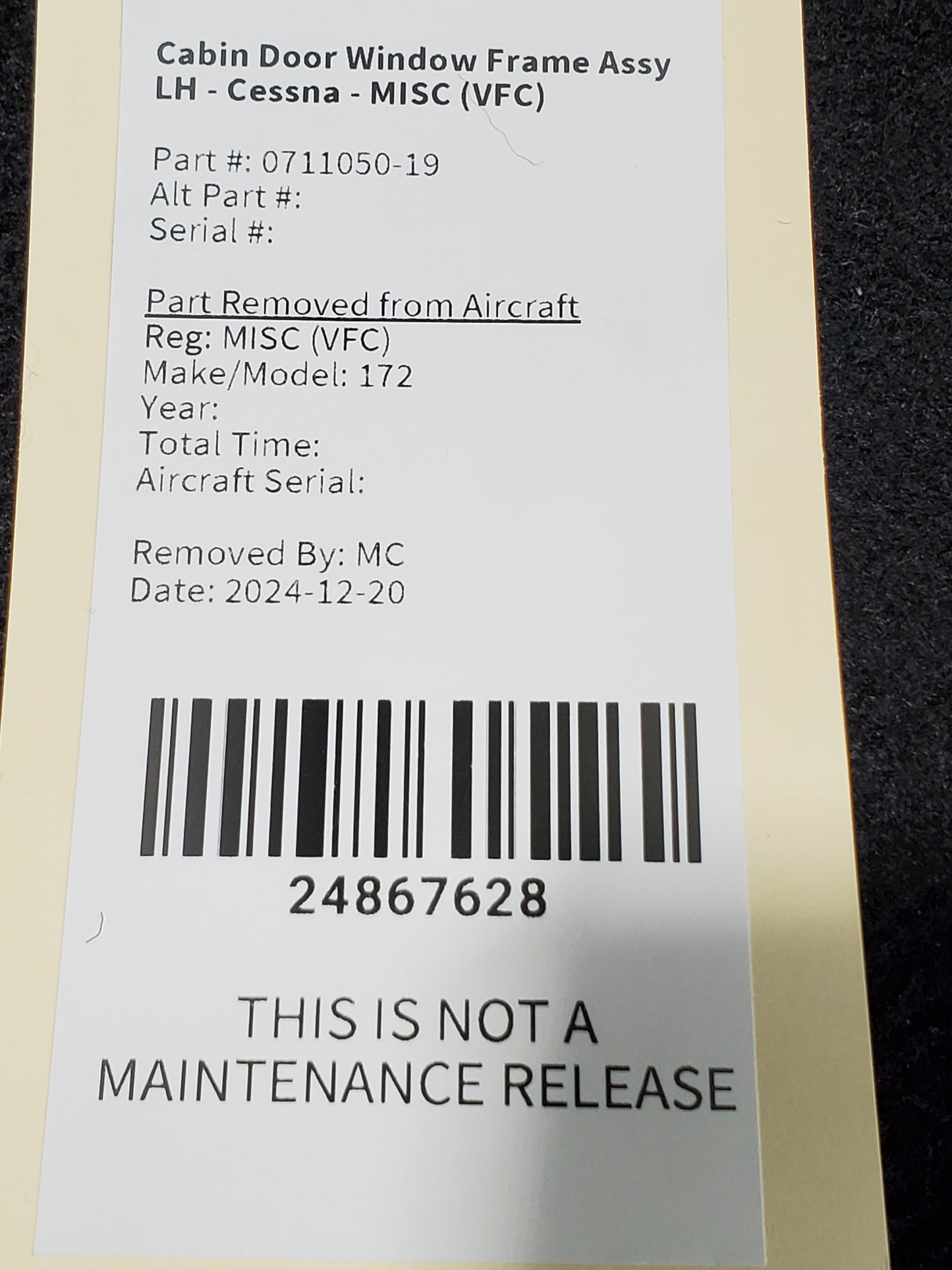 Cabin Door Window Frame Assy LH - Cessna - MISC (VFC)
