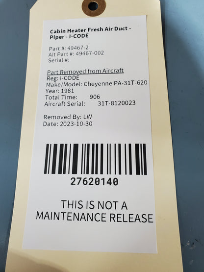 Cabin Heater Fresh Air Duct - Piper - I-CODE