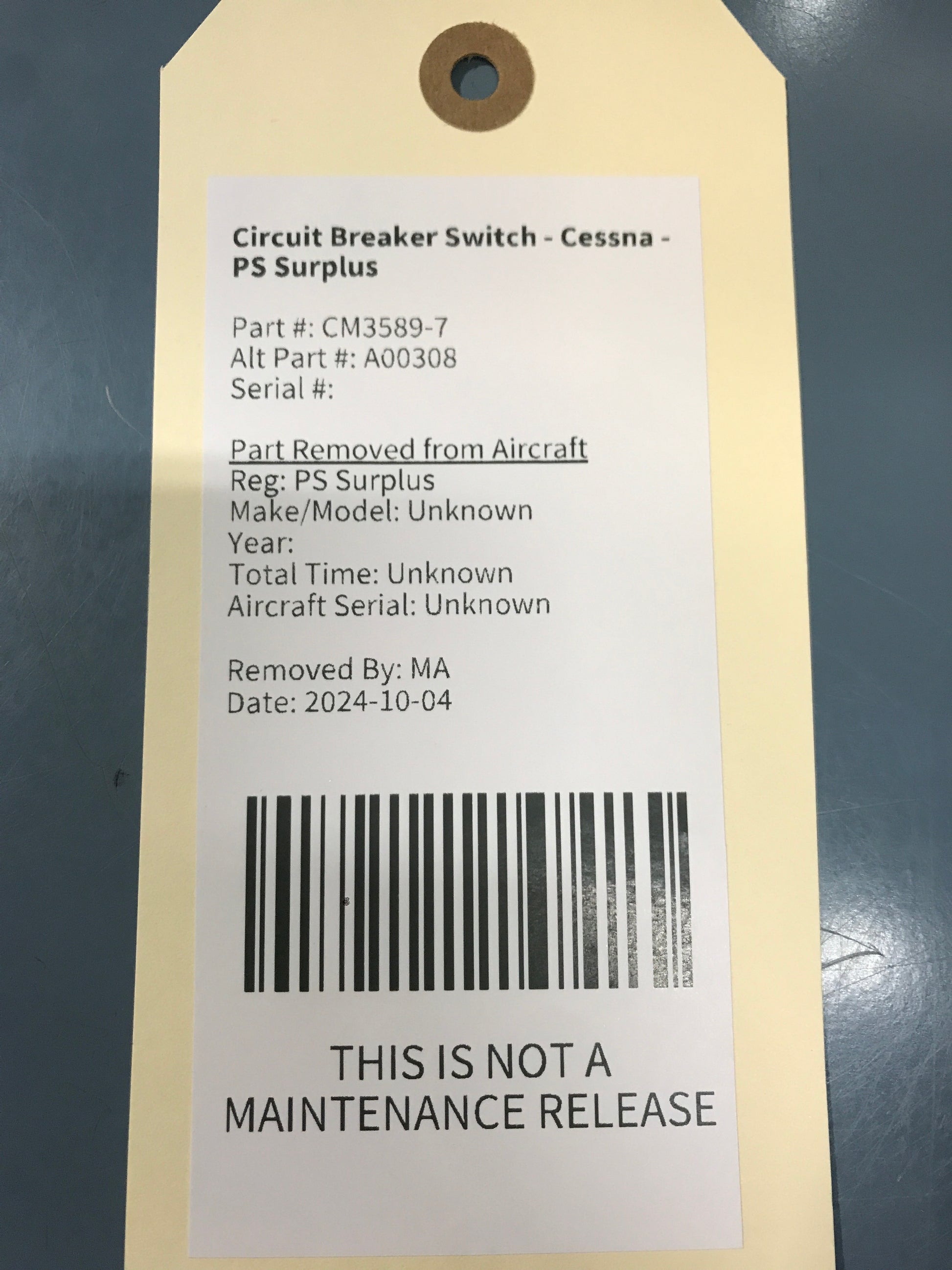 - Aircraft Serial Number: Unknown