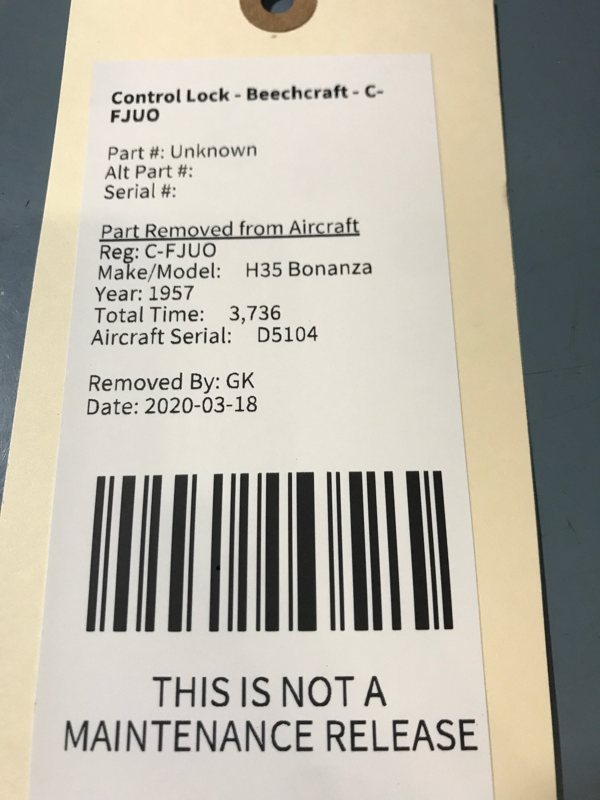 Control Lock - Beechcraft - C-FJUO
