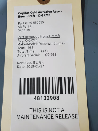 Copilot Cold Air Valve Assy - Beechcraft - C-GRMK