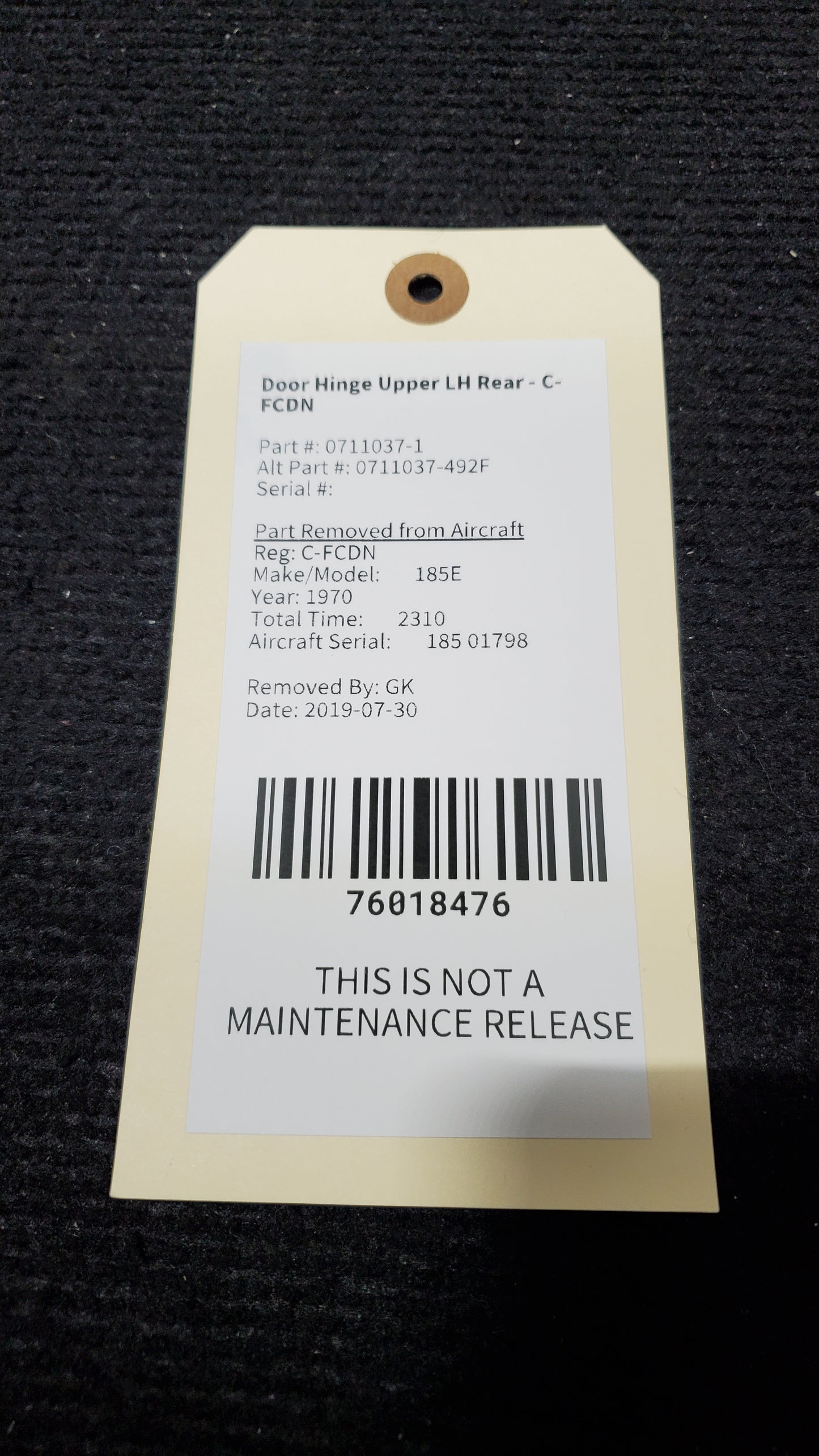 - Aircraft Serial Number: 185 01798