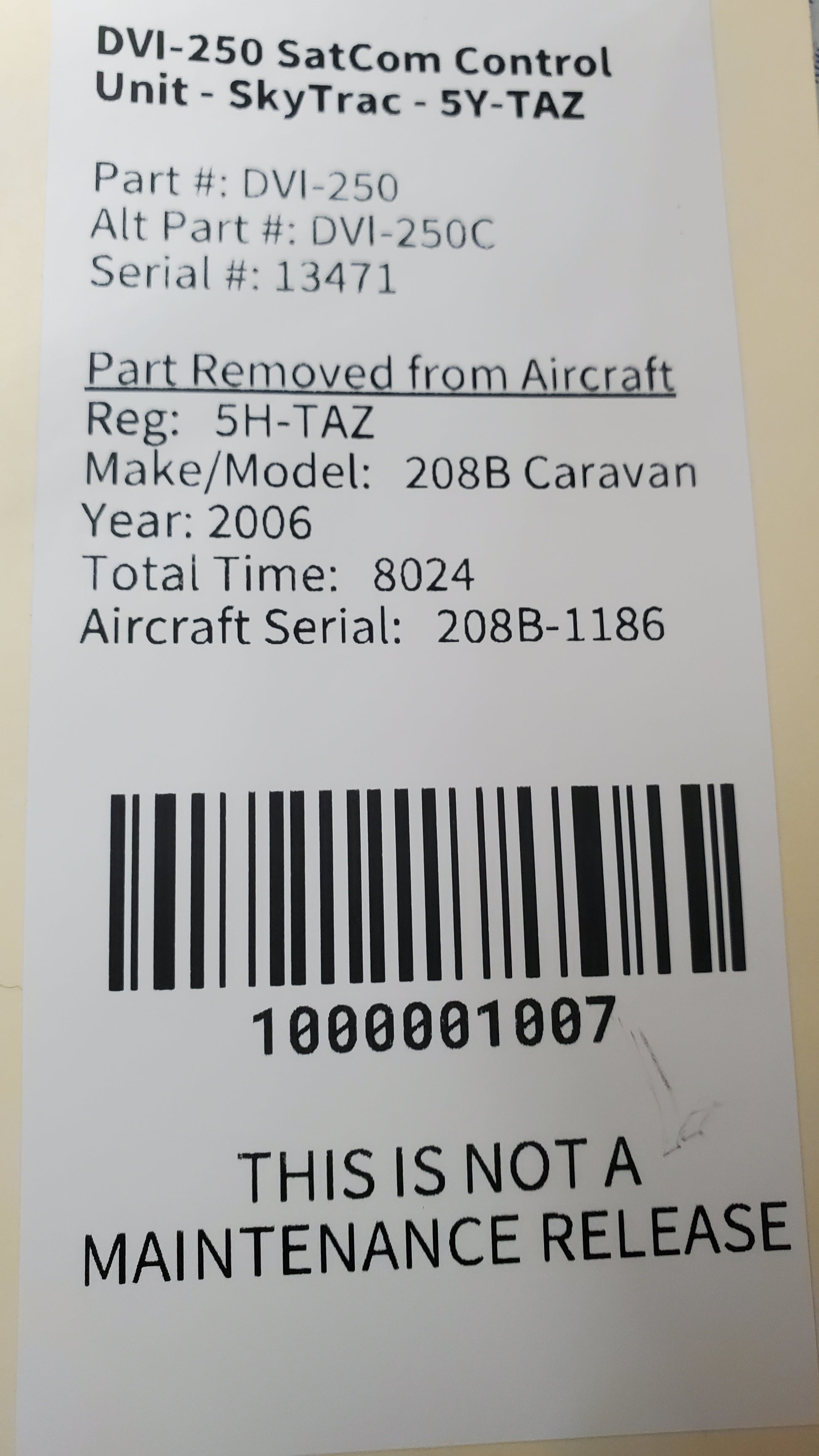 - Aircraft Serial Number: 208B-1186
