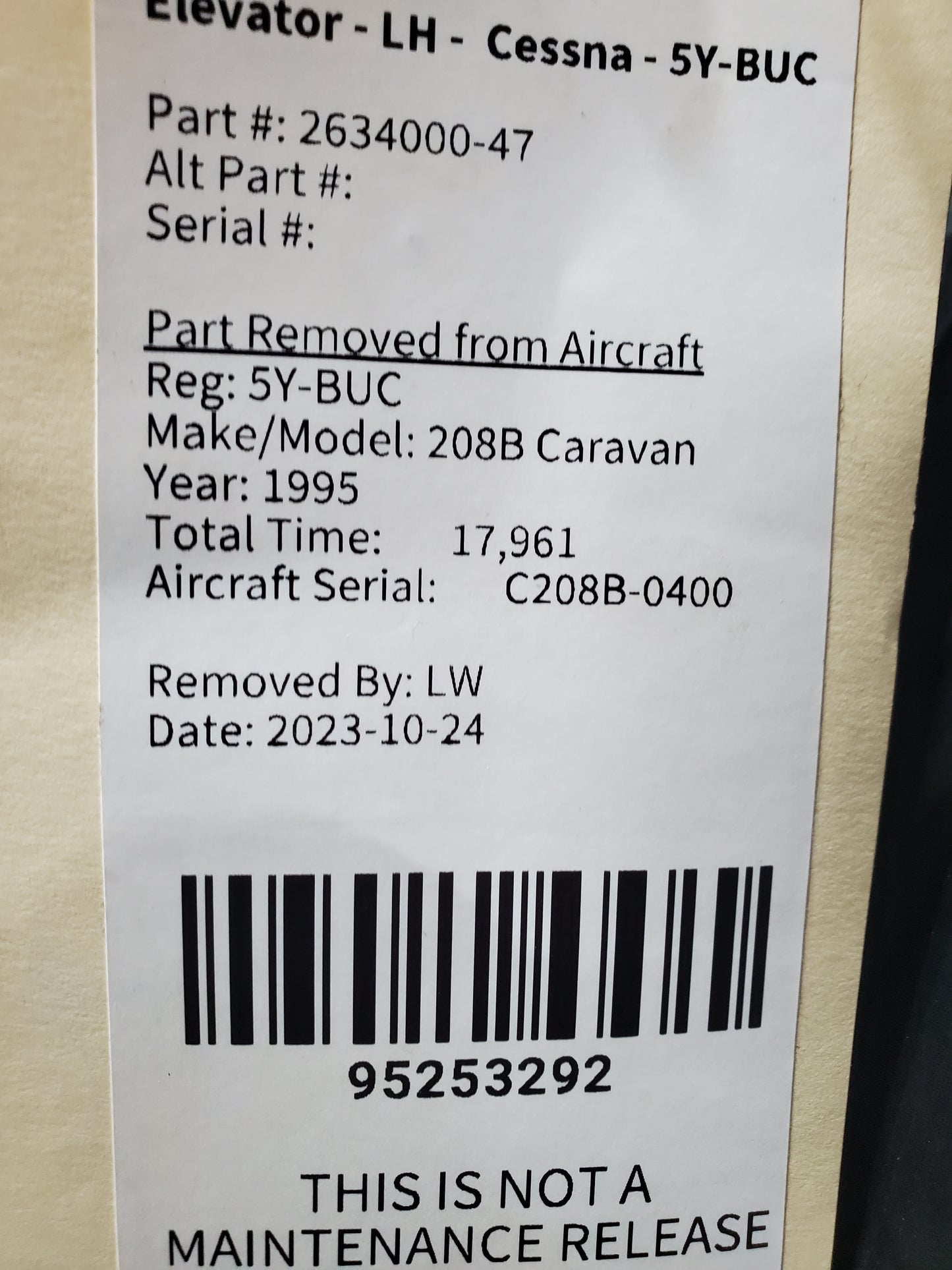 - Aircraft Serial Number: C208B-0400