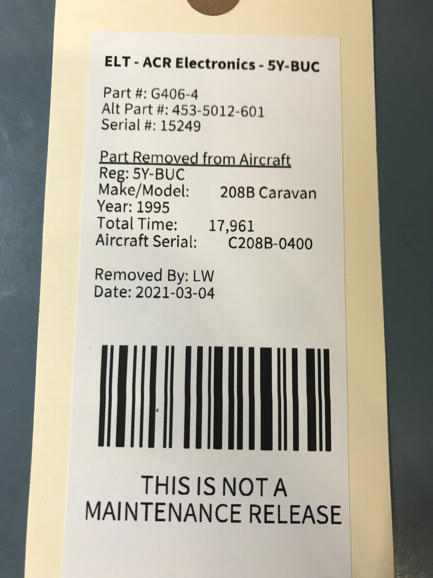 - Aircraft Serial Number: C208B-0400