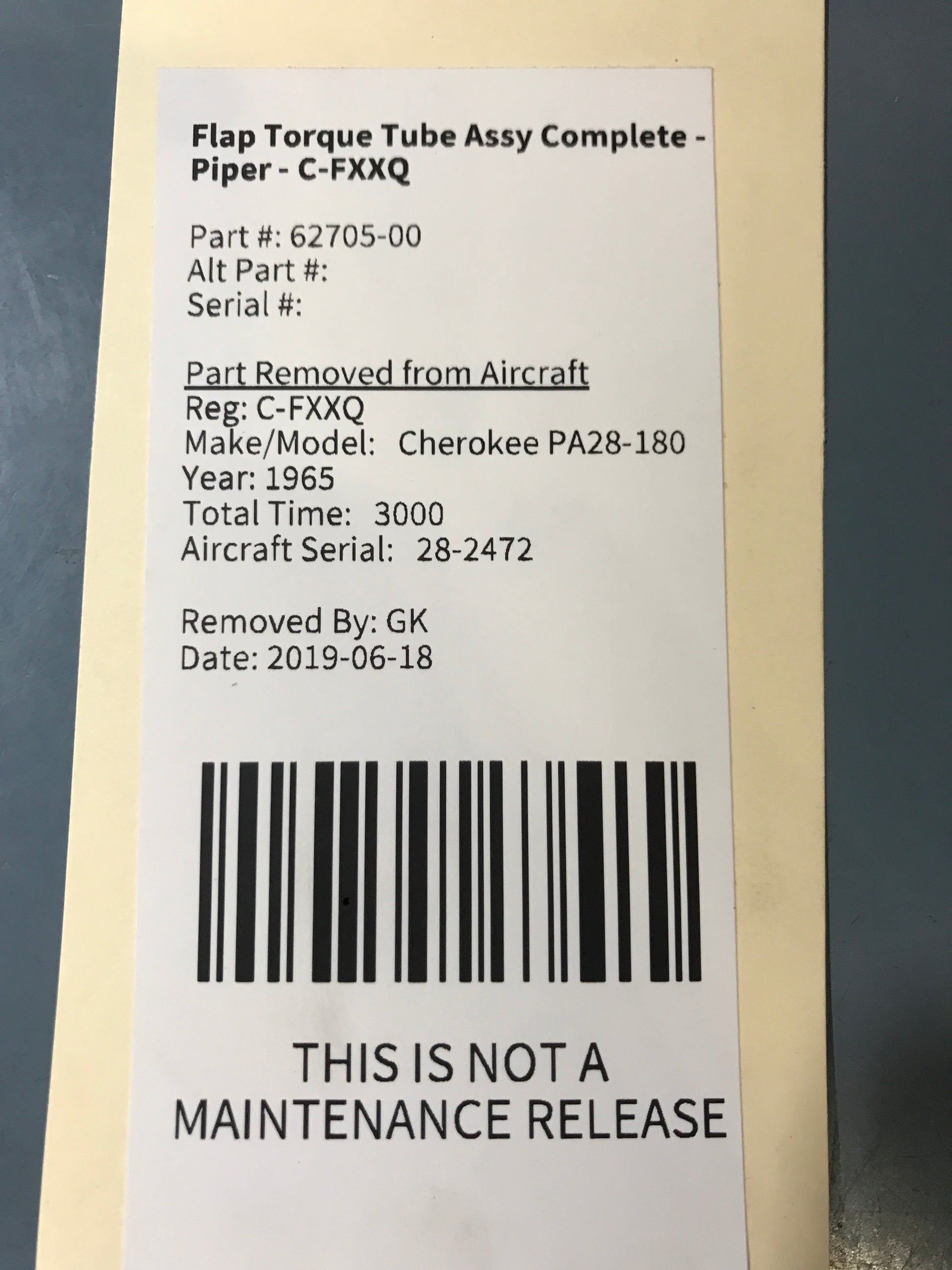 Flap Torque Tube Assy Complete - Piper - C-FXXQ