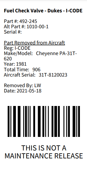 Fuel Check Valve - Dukes - I-CODE - 1 of 2
