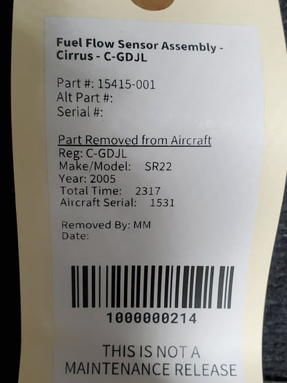 Fuel Flow Sensor Assembly - Cirrus - C-GDJL