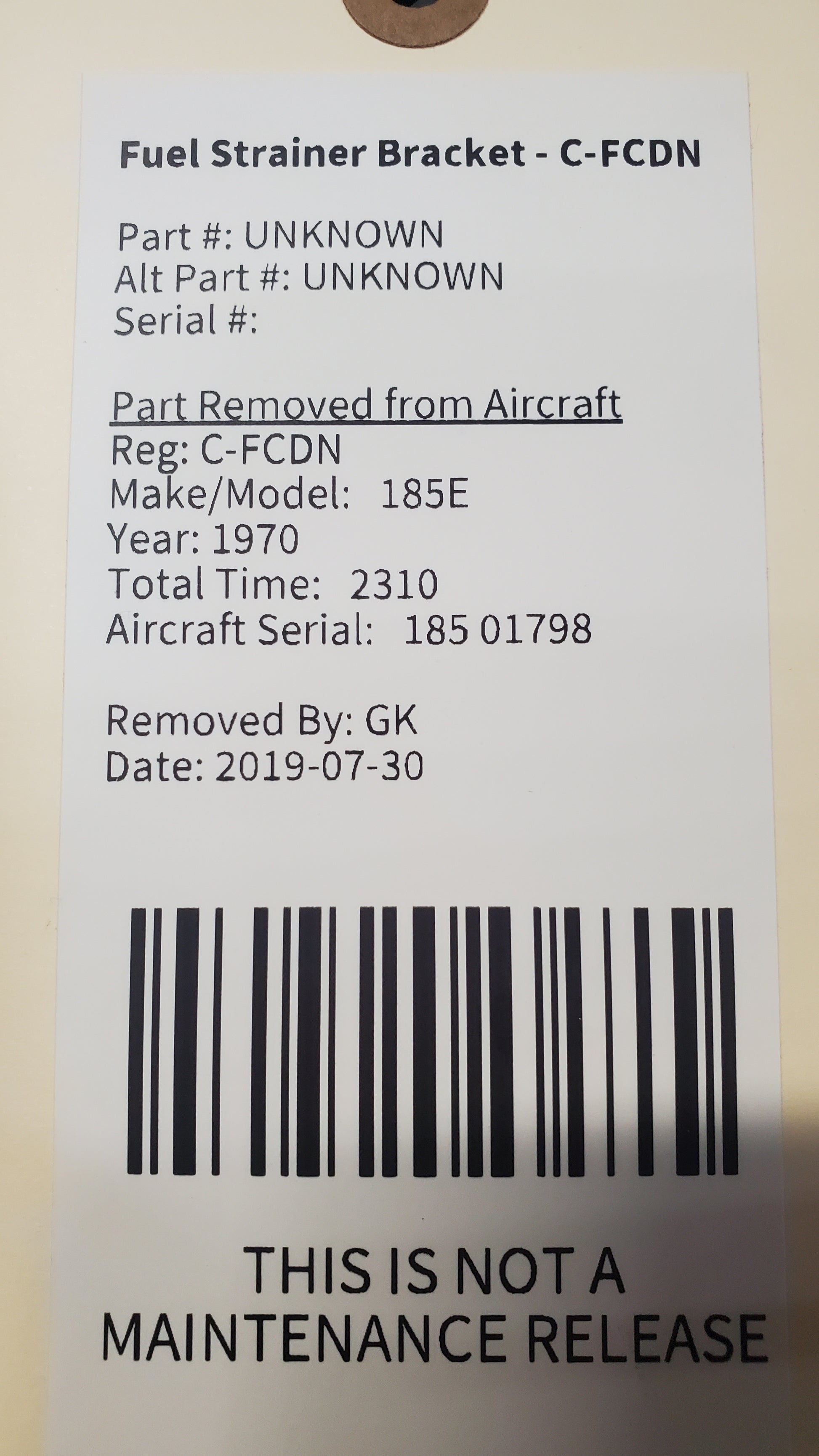 - Aircraft Serial Number: 185 01798