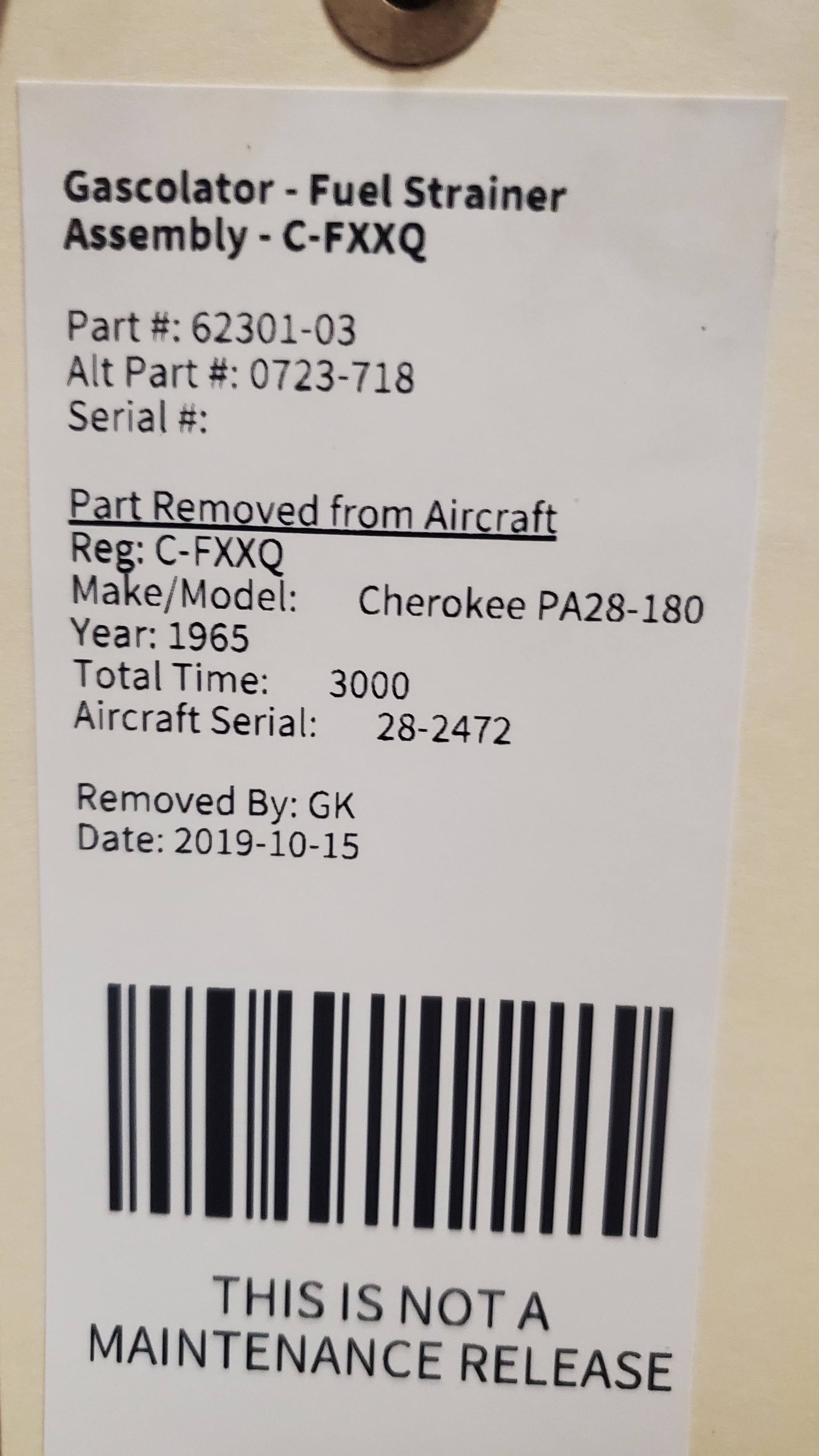 Gascolator - Fuel Strainer Assembly - C-FXXQ