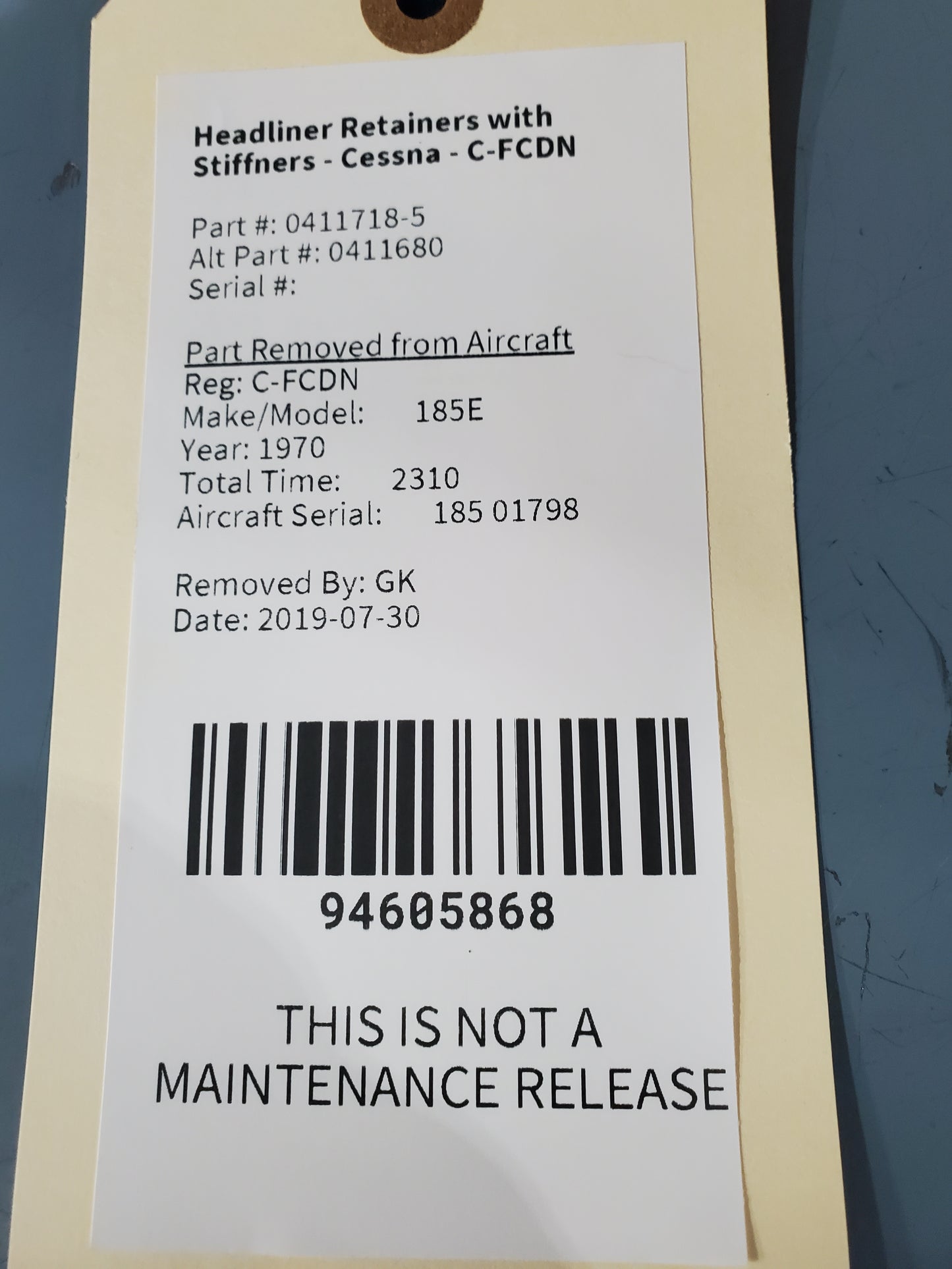 Headliner Retainers with Stiffners - Cessna - C-FCDN