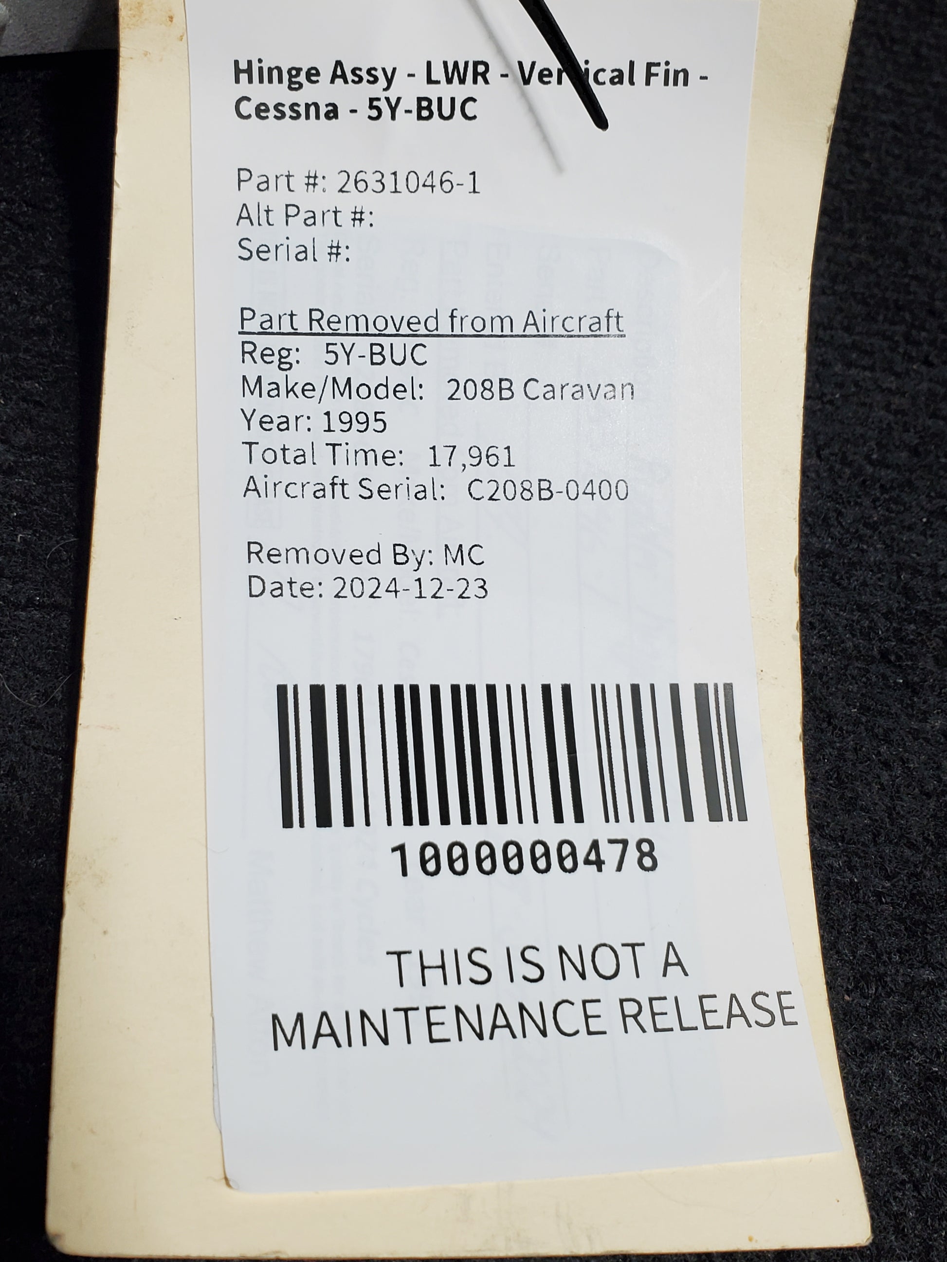 - Aircraft Serial Number: C208B-0400