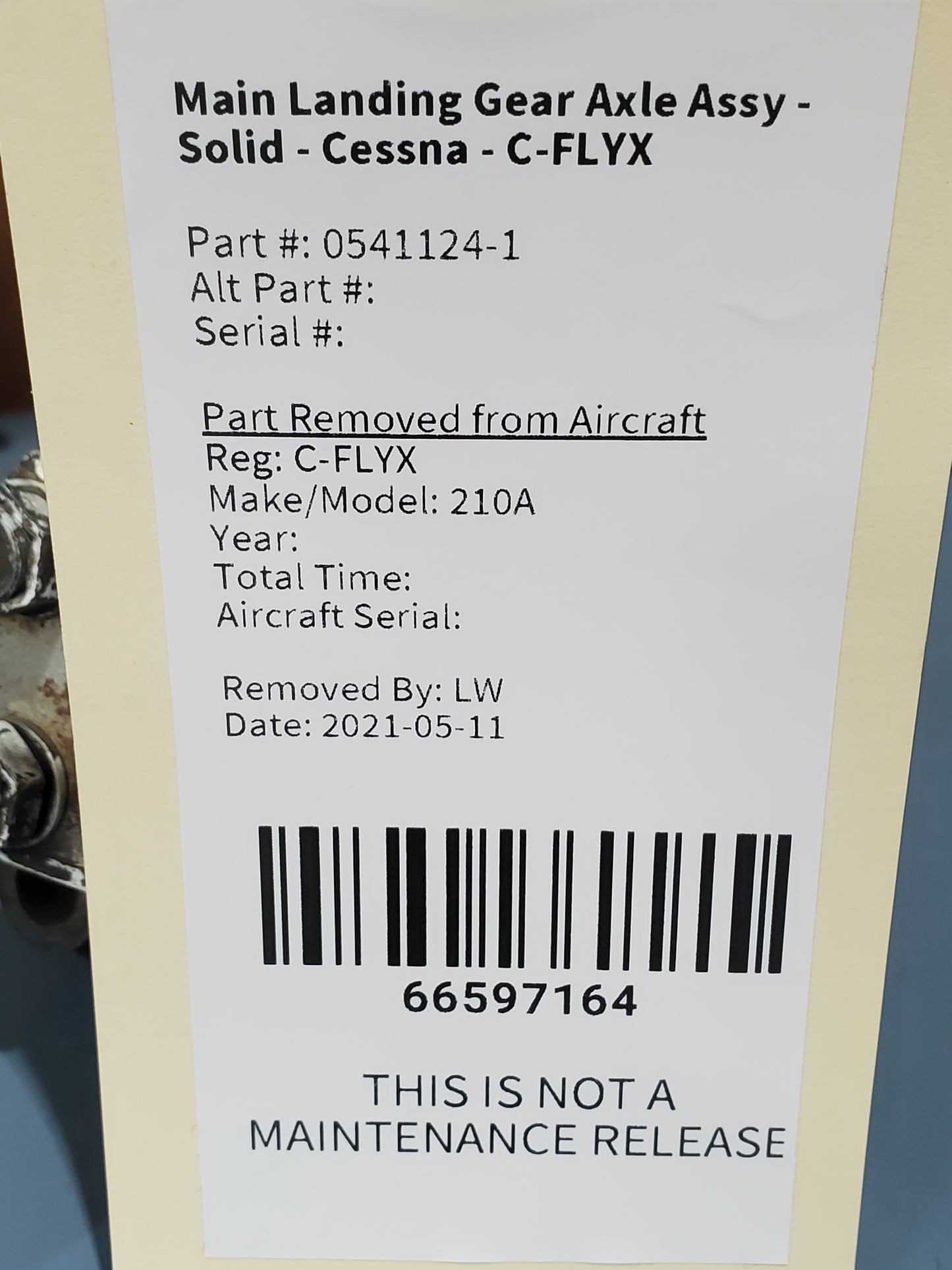 Main Landing Gear Axle Assy - Solid - Cessna - C-FLYX