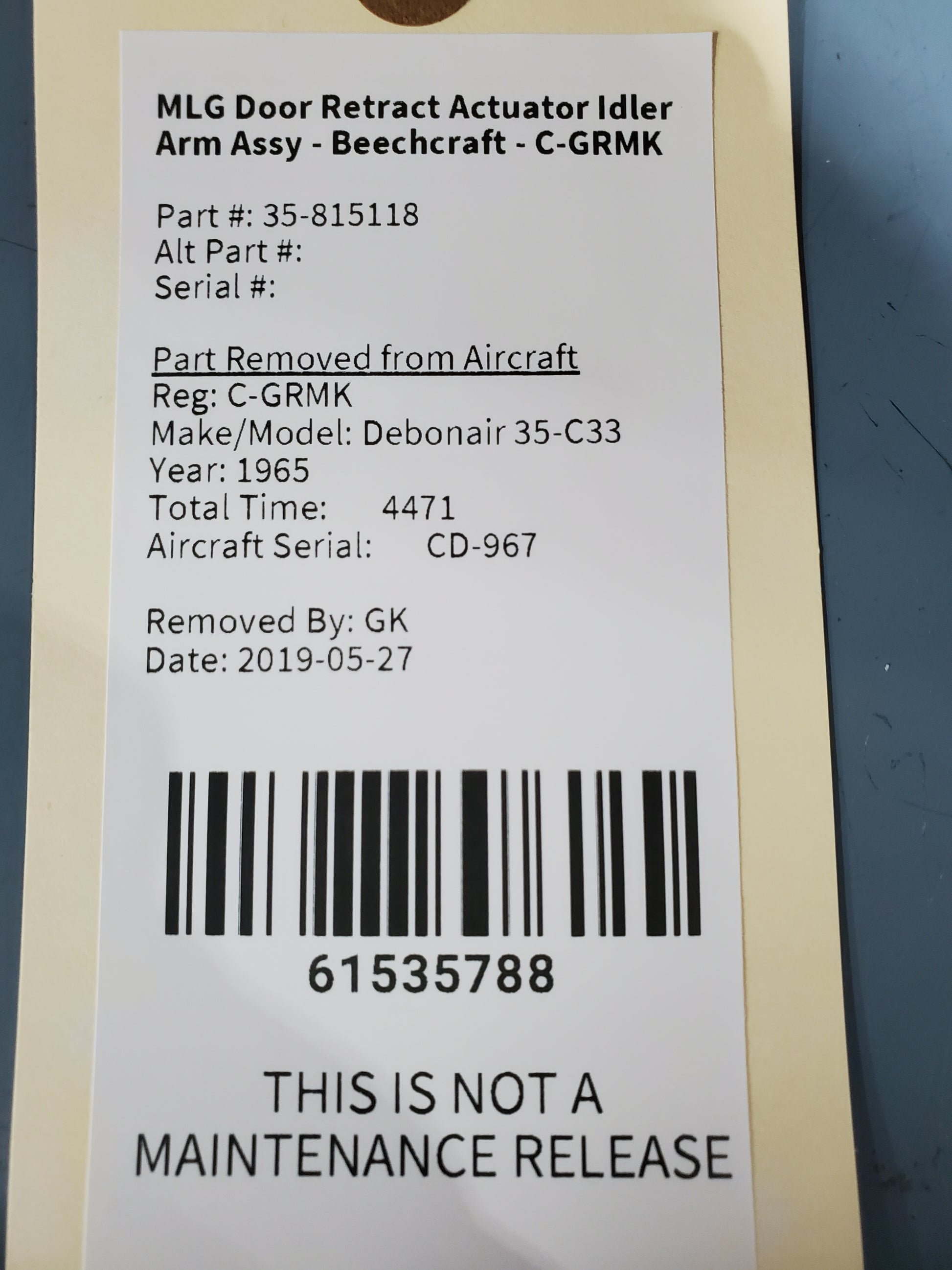 MLG Door Retract Actuator Idler Arm Assy - Beechcraft - C-GRMK