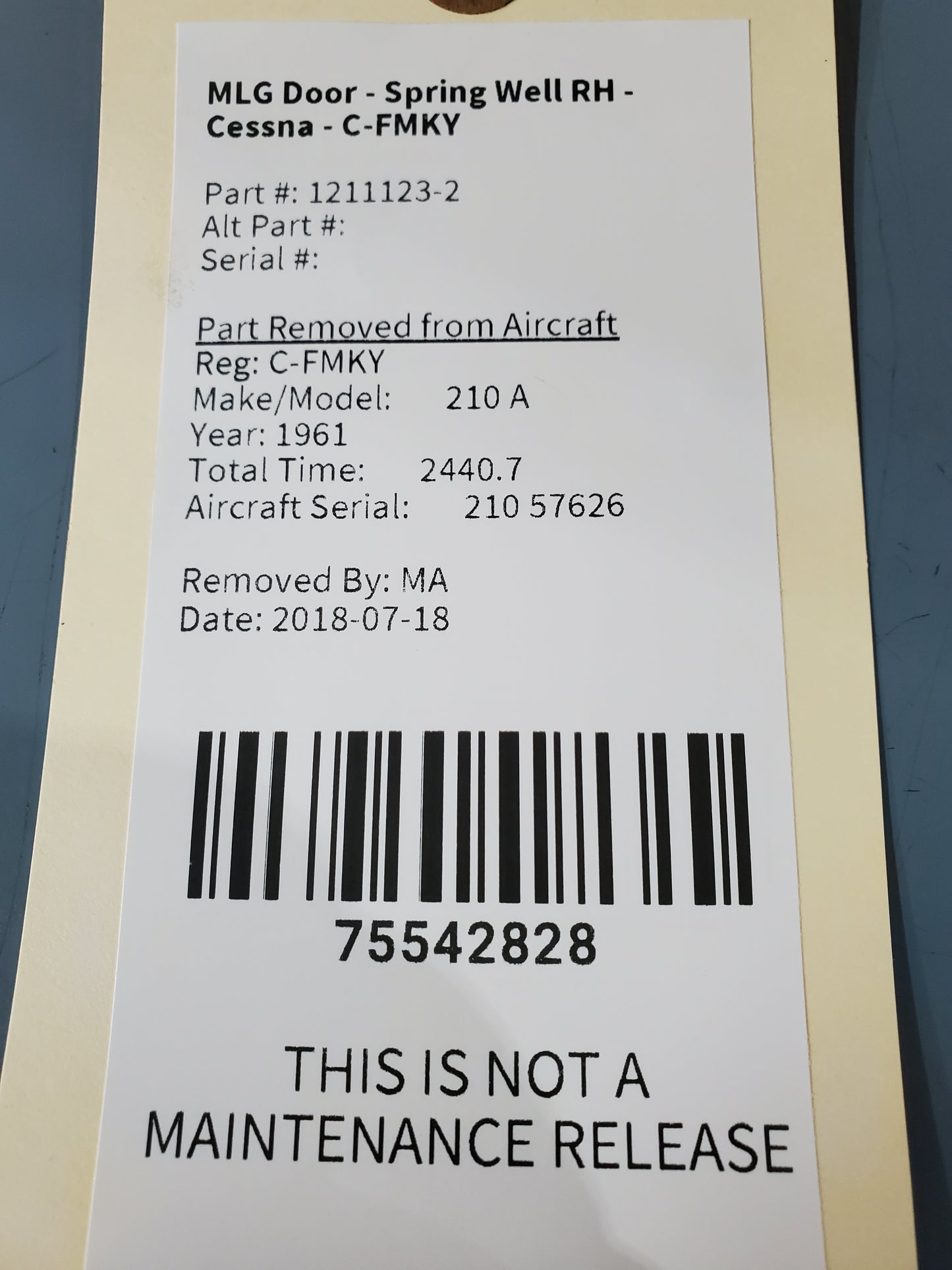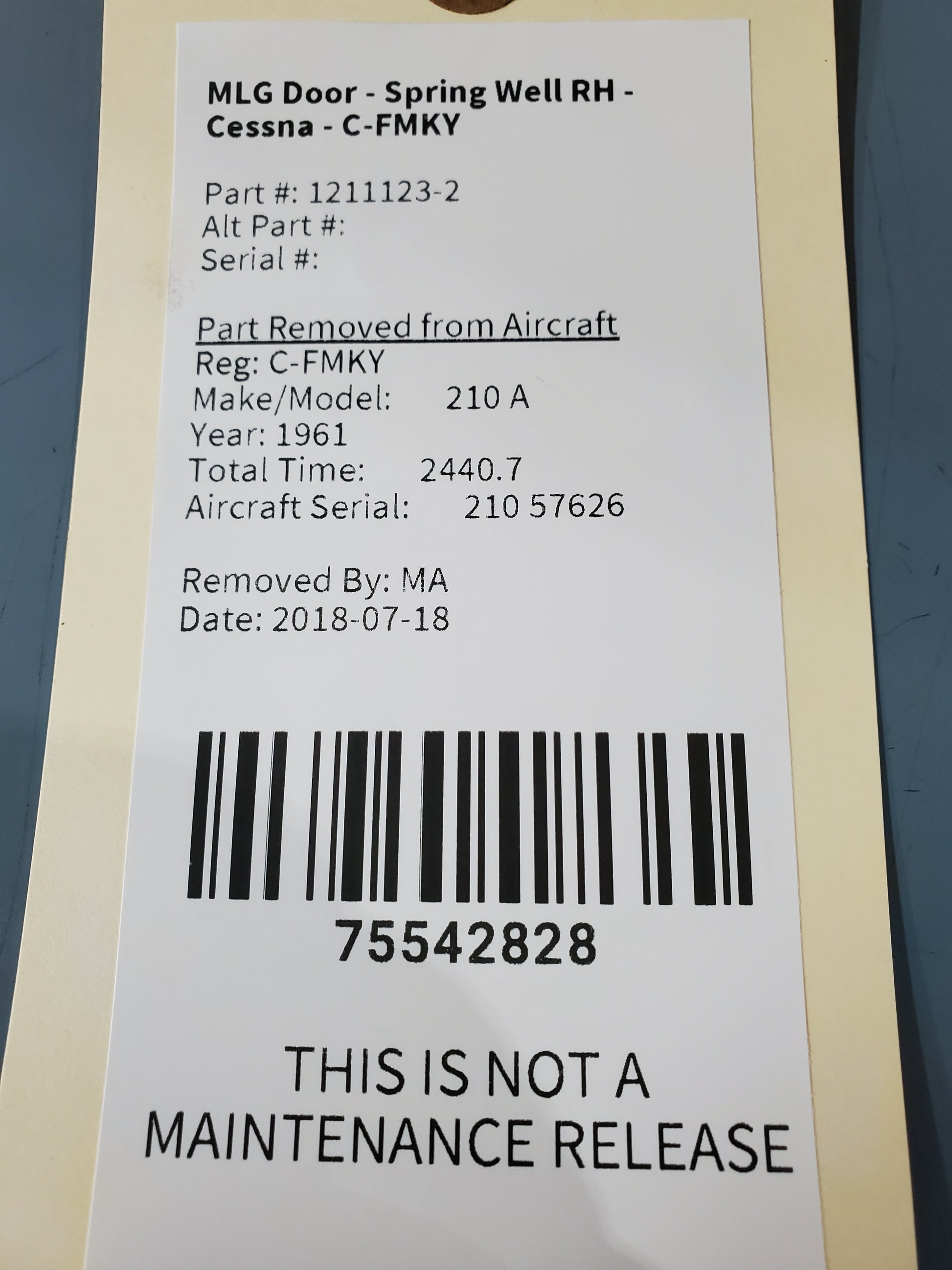 MLG Door - Spring Well RH - Cessna - C-FMKY