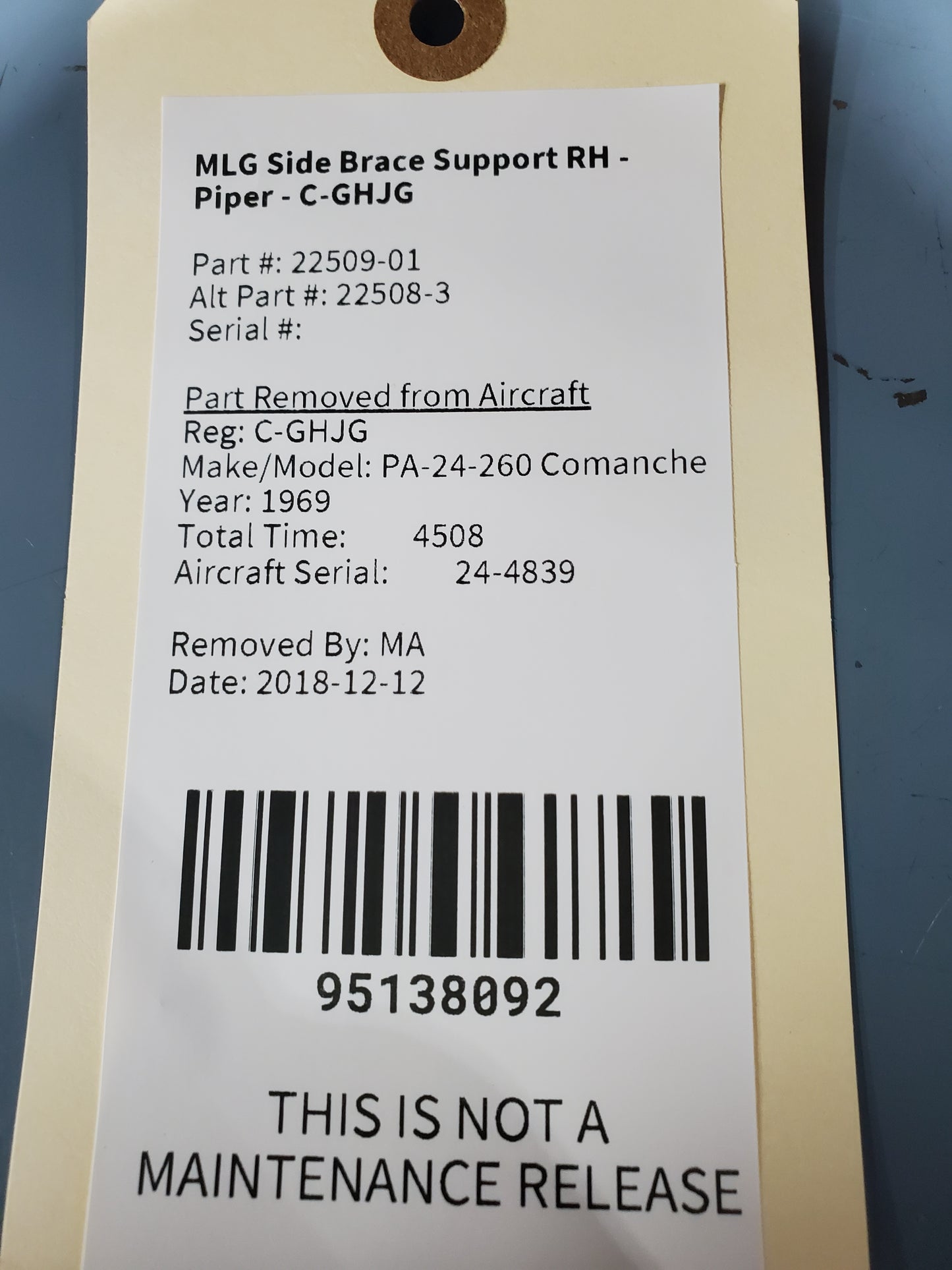MLG Side Brace Support RH - Piper - C-GHJG