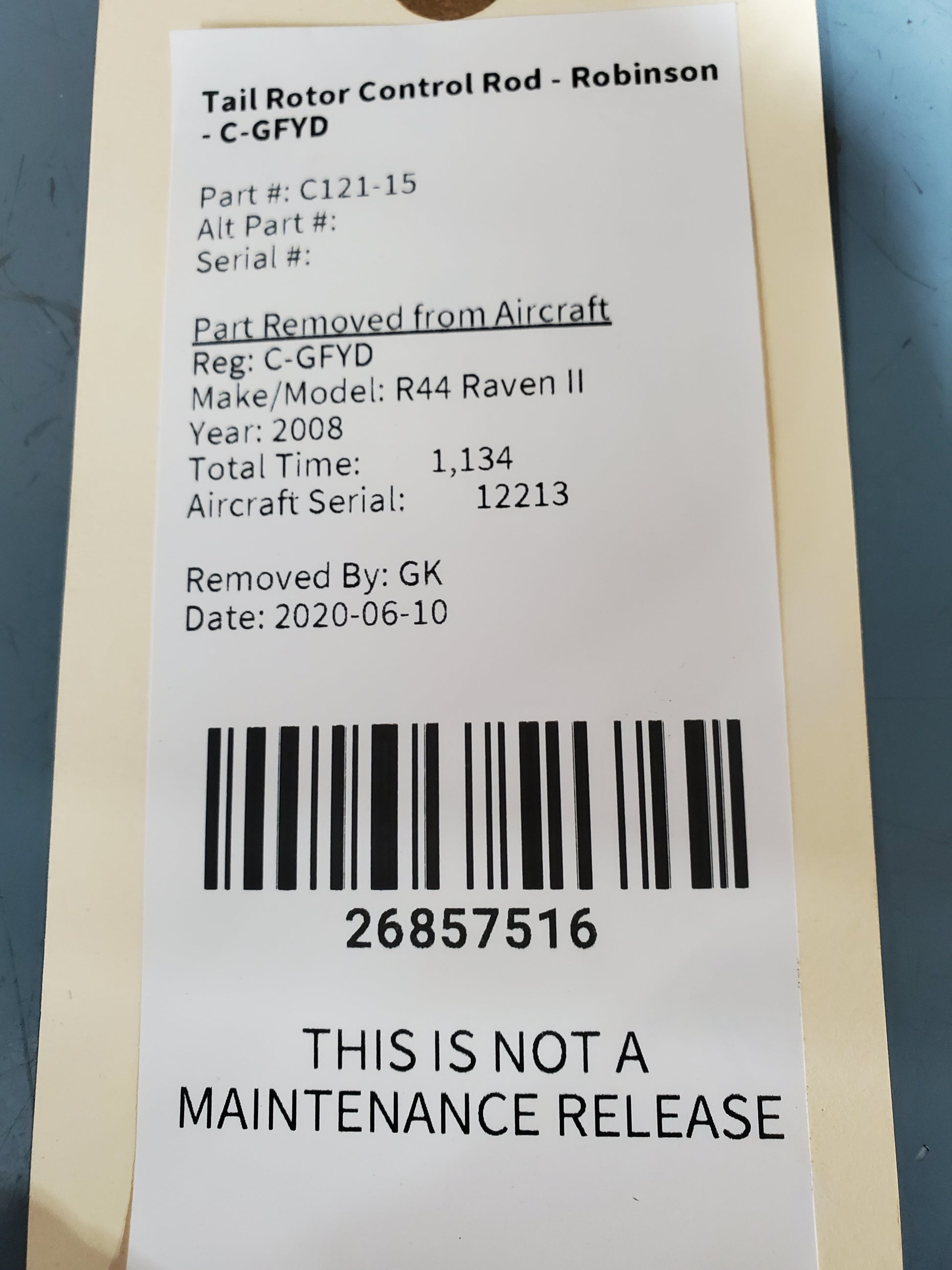 Tail Rotor Control Rod - Robinson - C-GFYD
