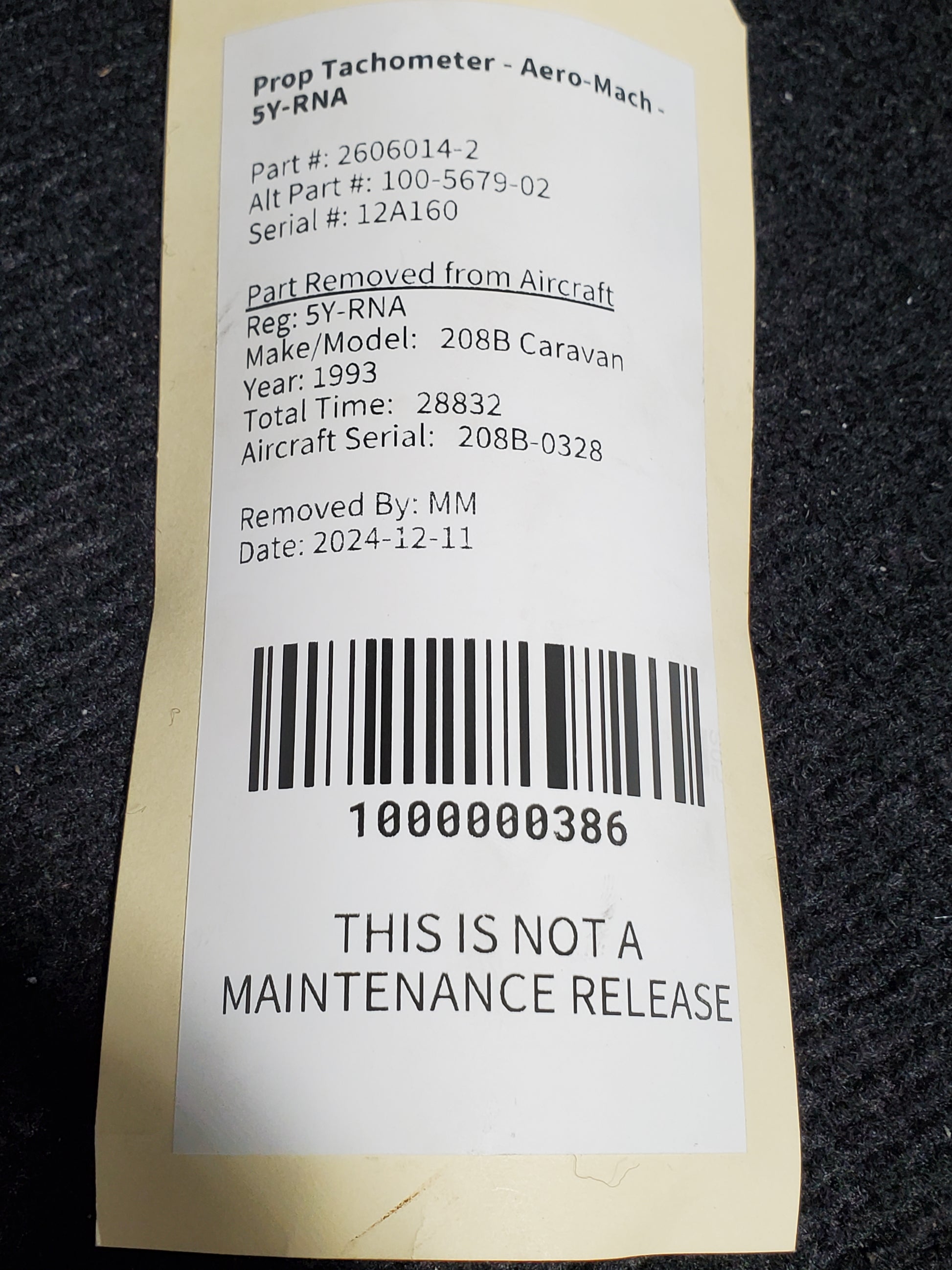 - Aircraft Serial Number: 208B-0328