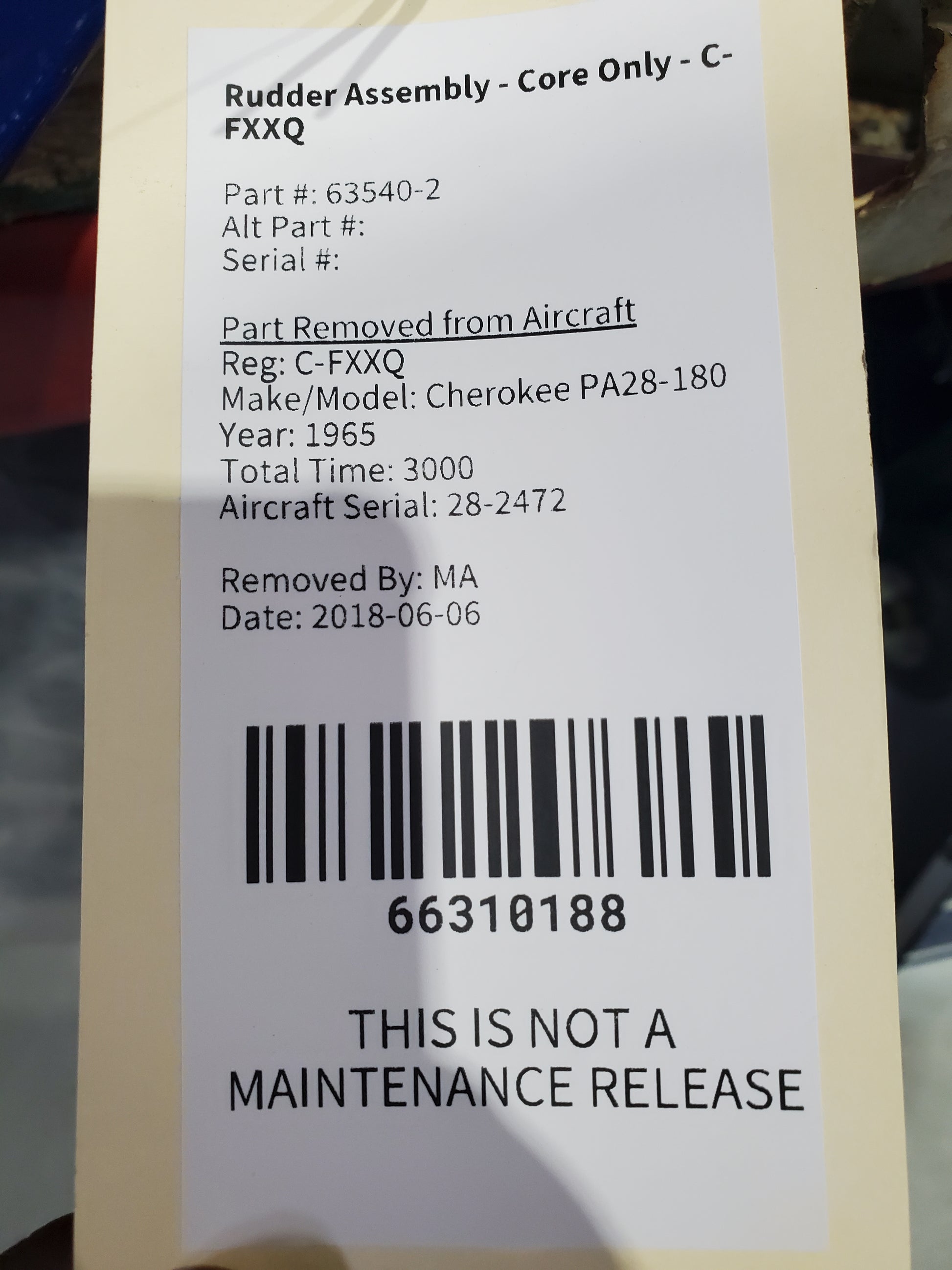 Rudder Assembly - Core Only - C-FXXQ