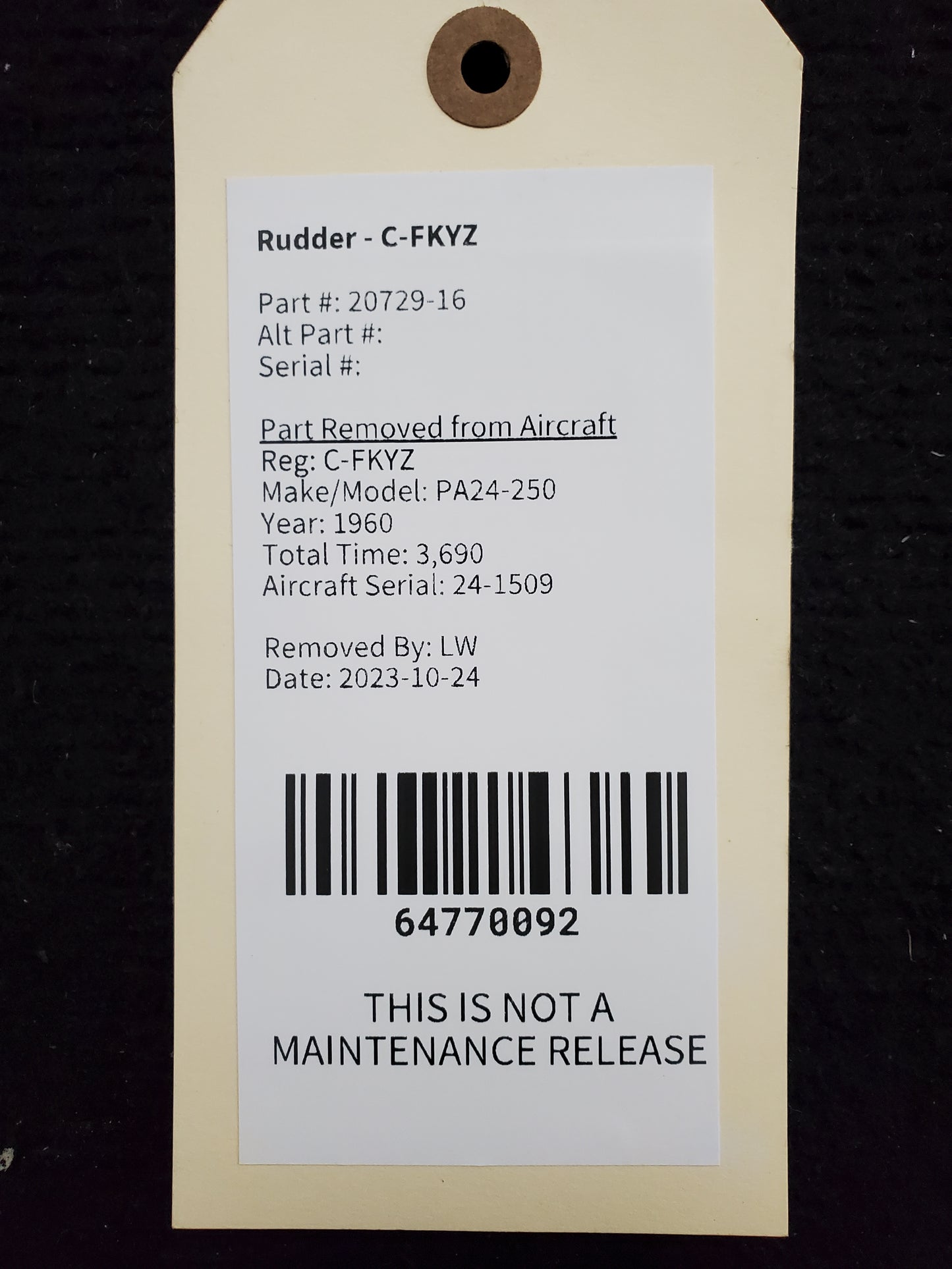 Rudder - Piper - C-FKYZ