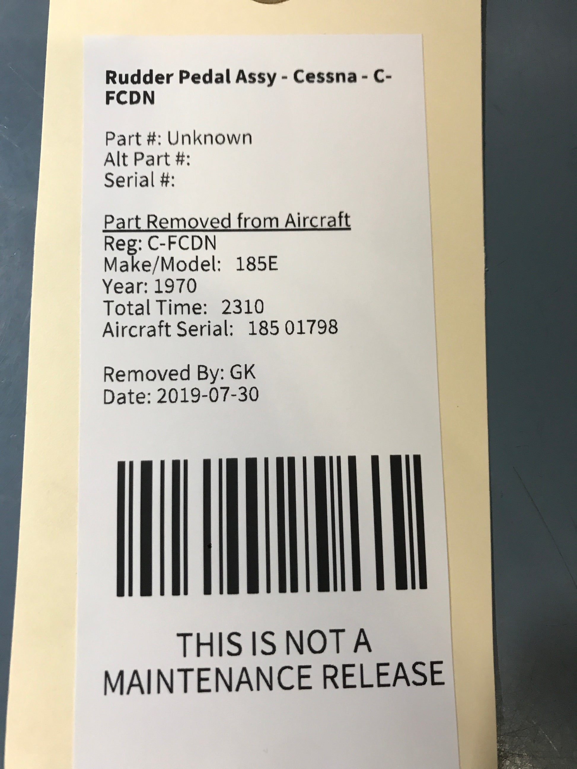 - Aircraft Serial Number: 185 01798