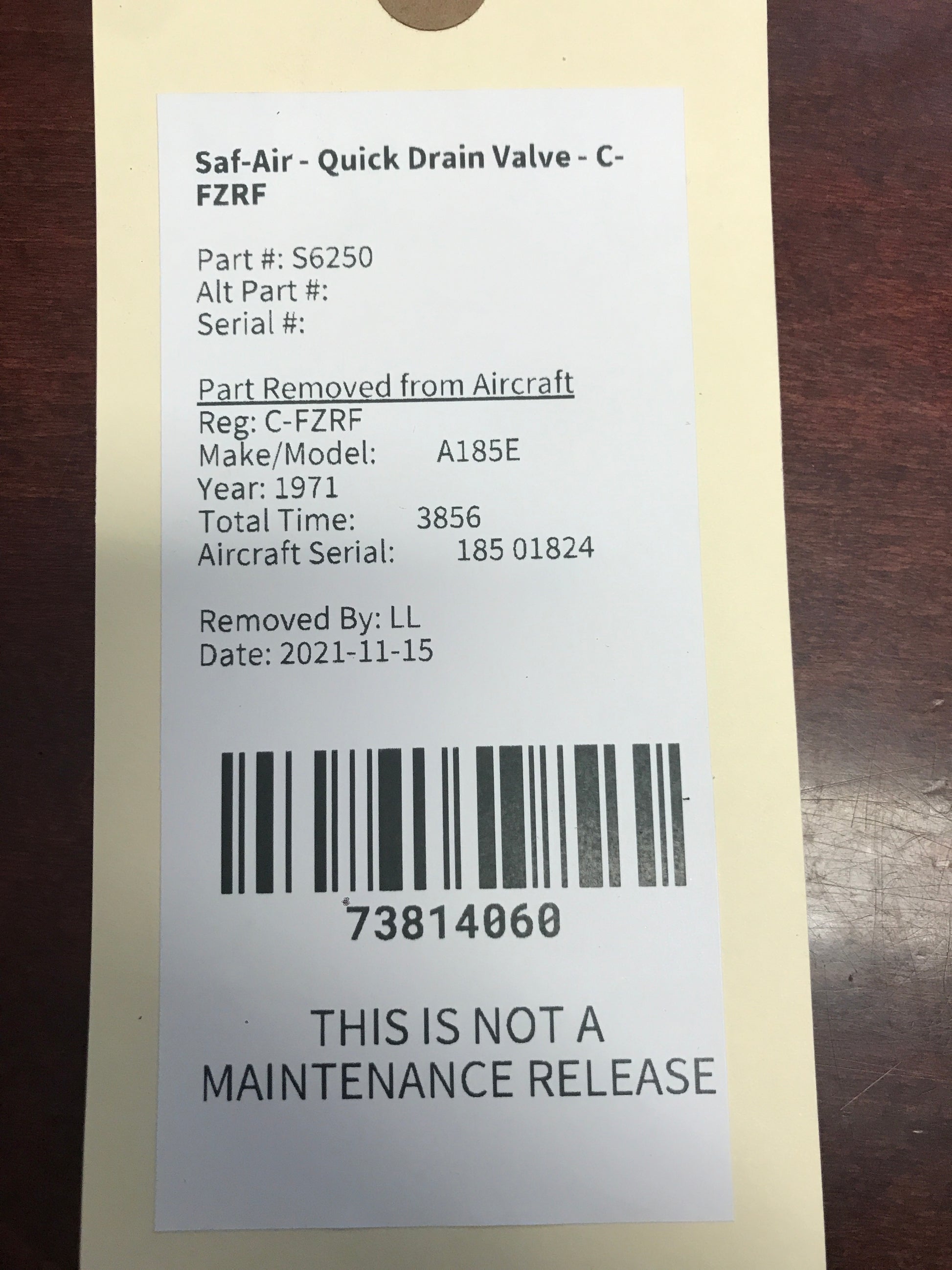 - Aircraft Serial Number: 185 01824