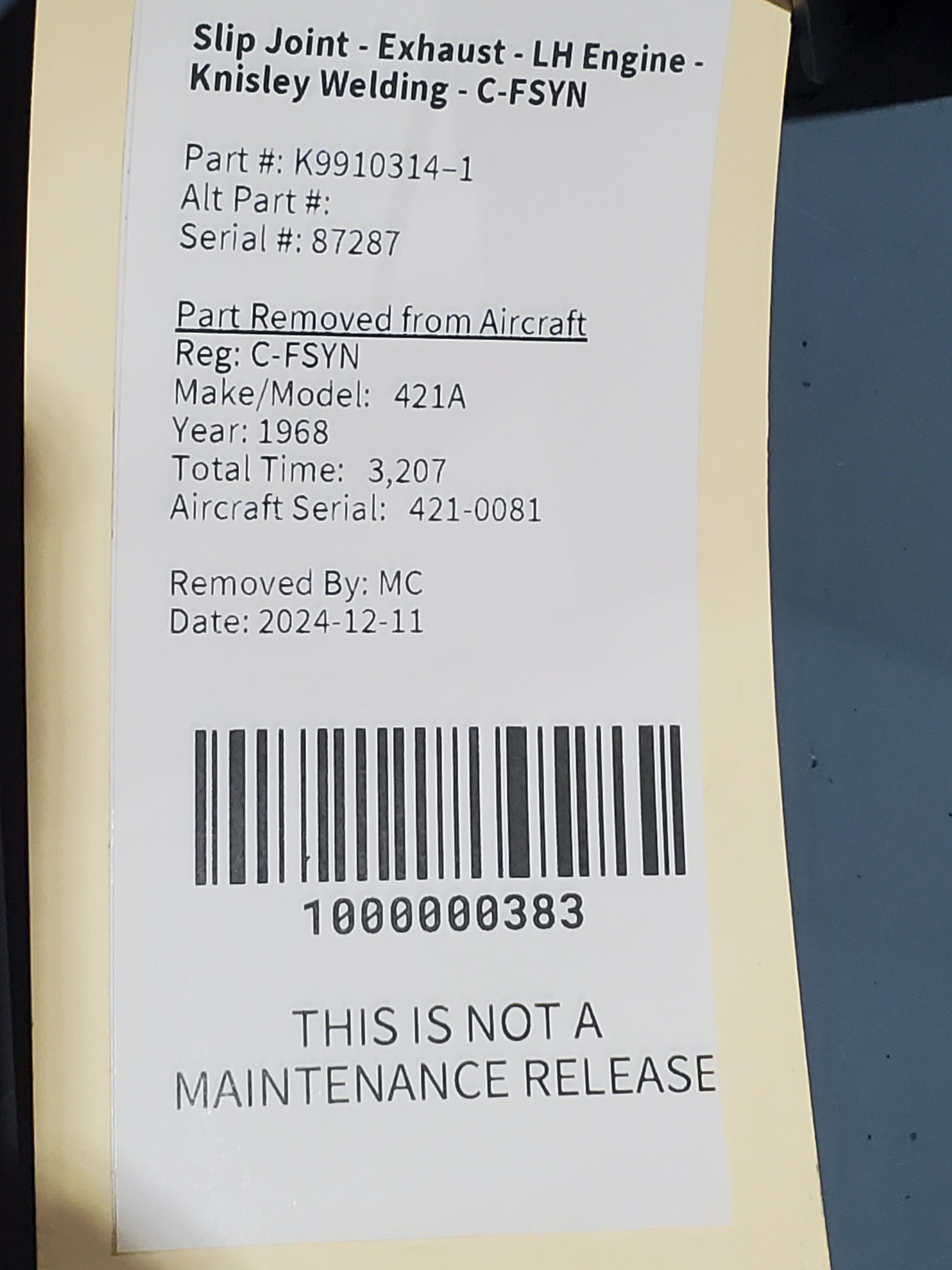 • Part #: K9910314–1