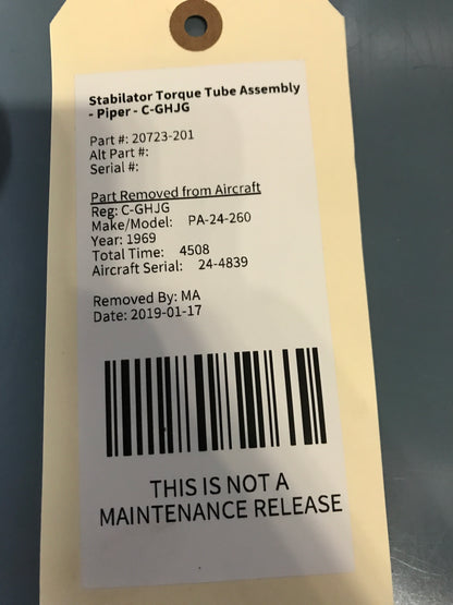 Stabilator Torque Tube Assembly - Piper - C-GHJG