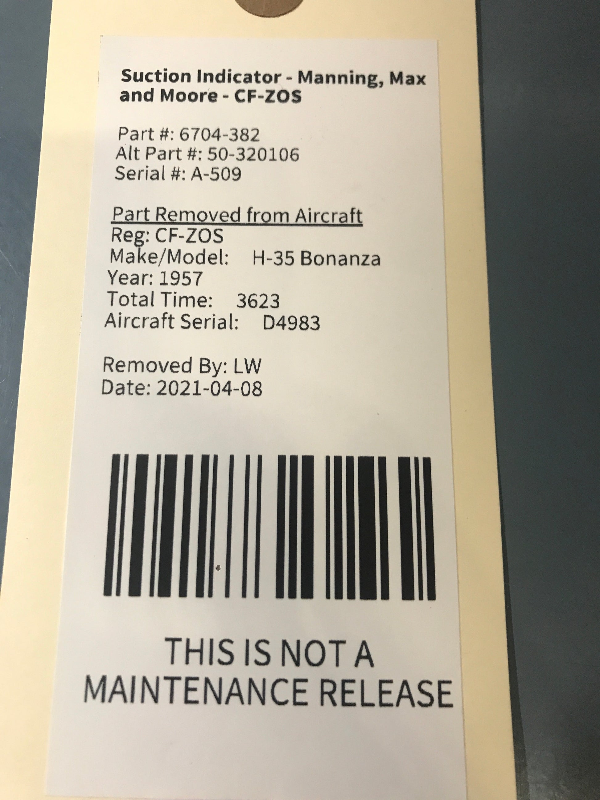 Suction Indicator - Manning, Max and Moore - CF-ZOS