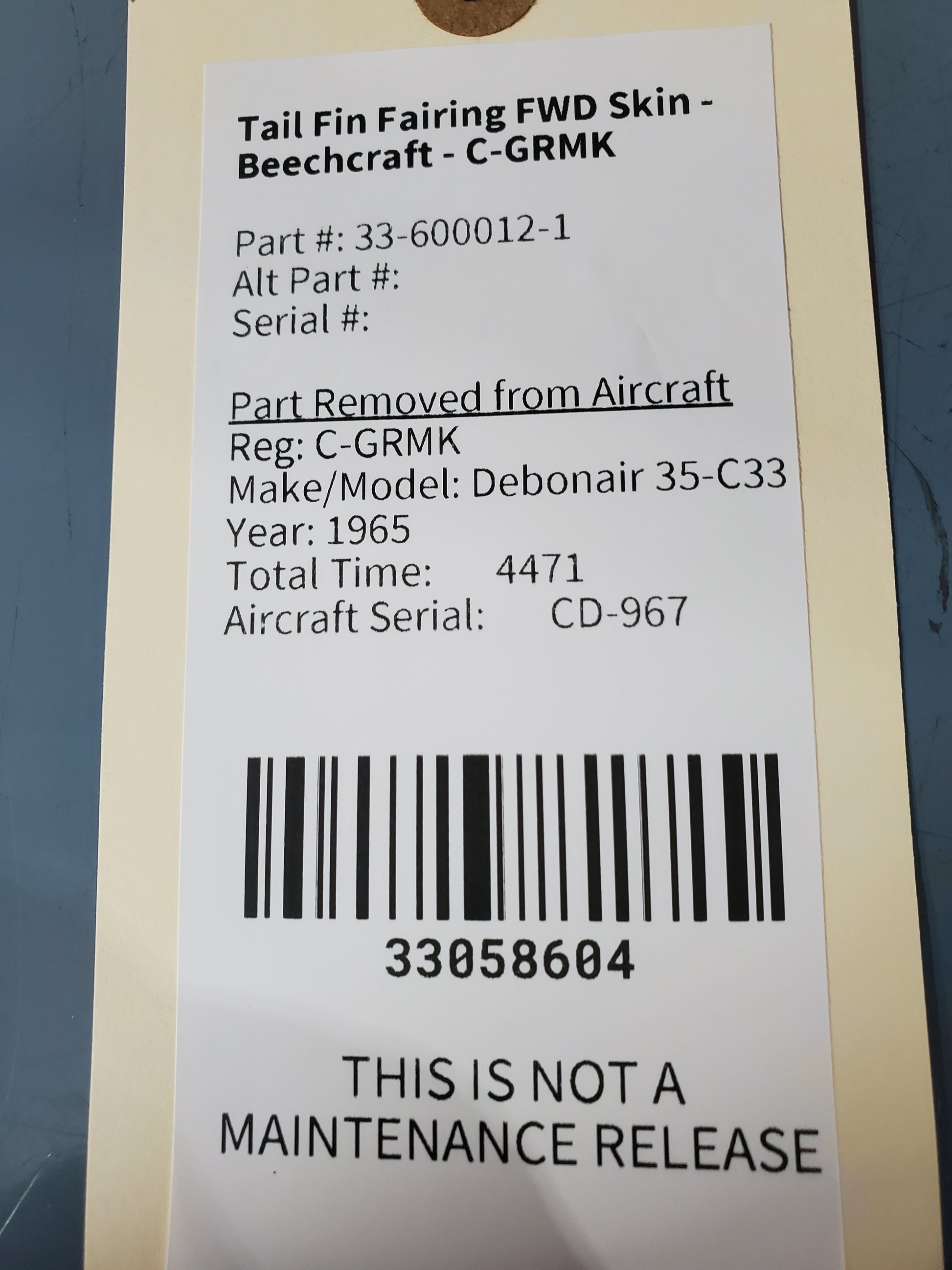 Tail Fin Fairing FWD Skin - Beechcraft - C-GRMK