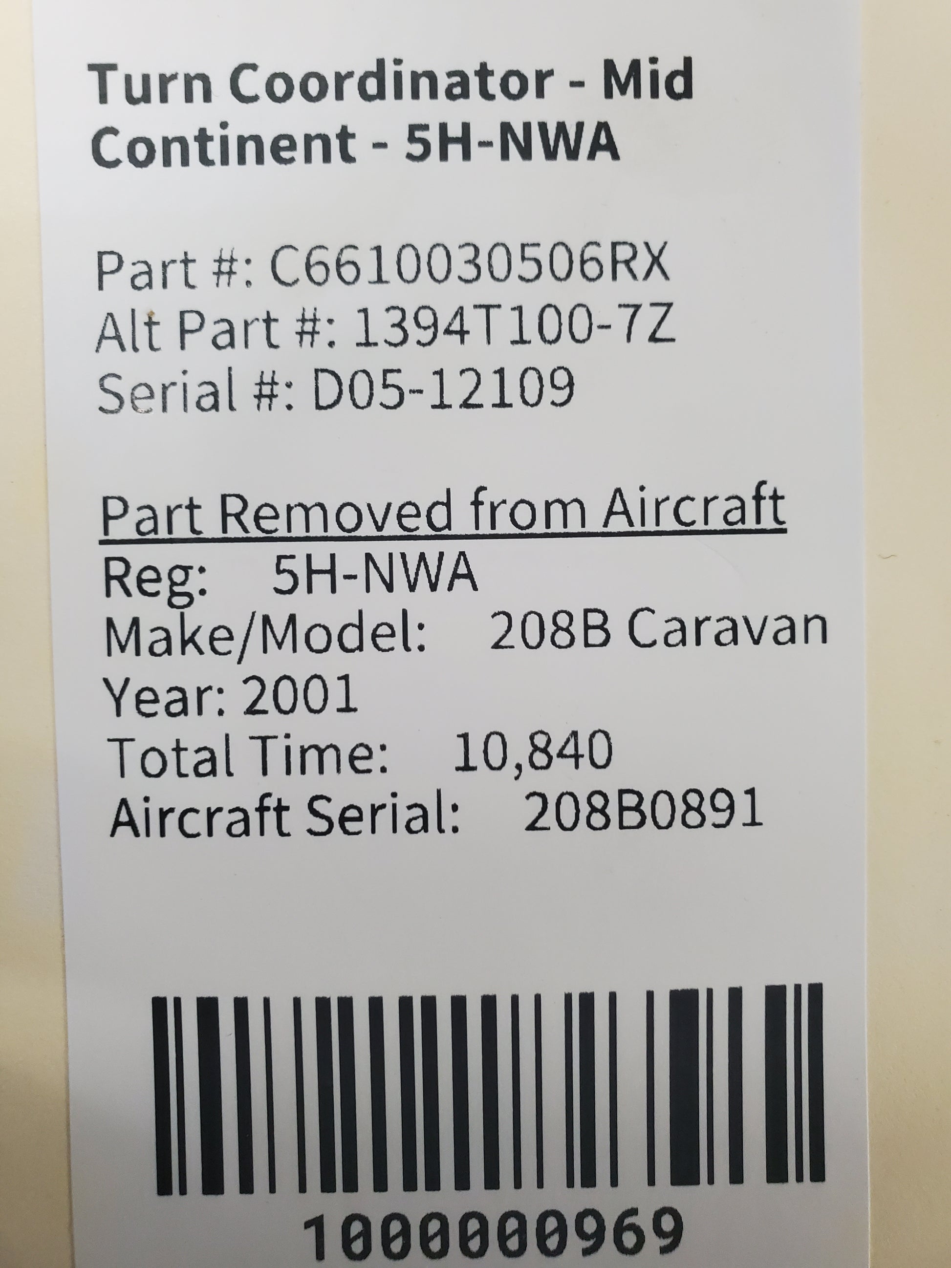 Turn Coordinator - Mid Continent - 5H-NWA