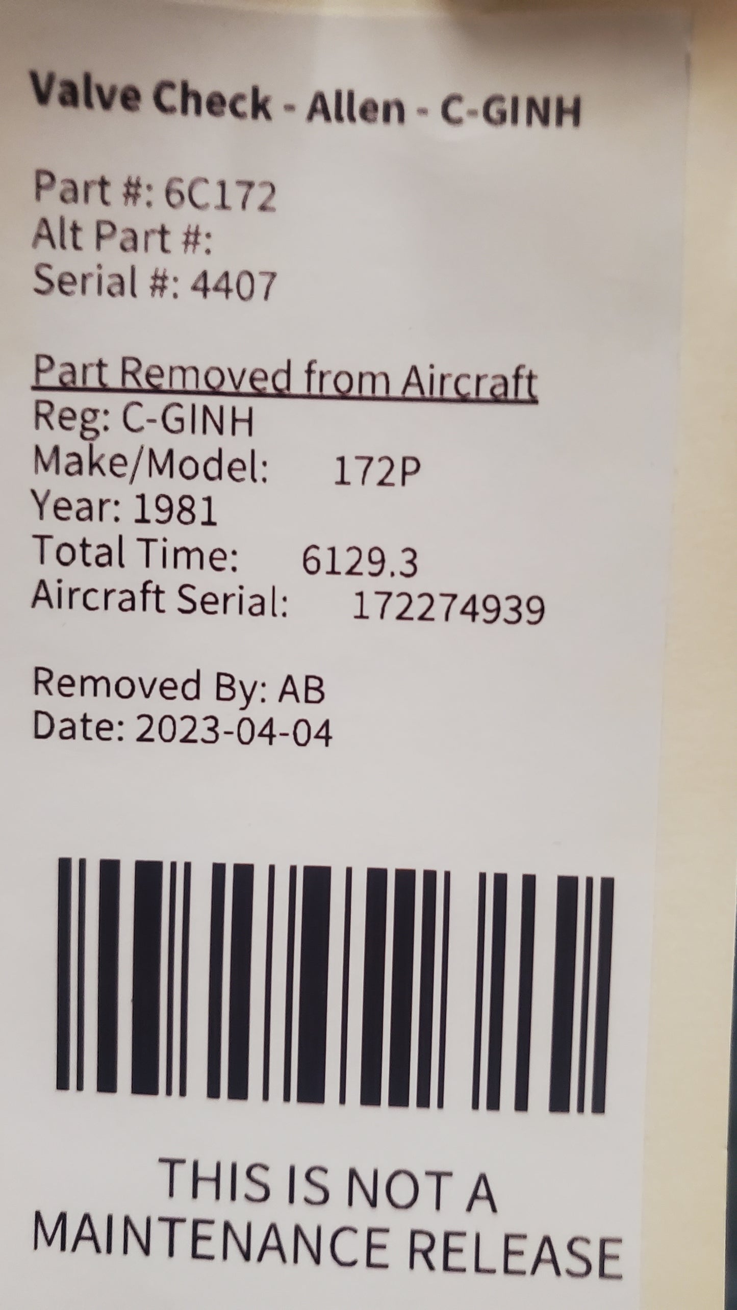 Valve Check - Allen - C-GINH