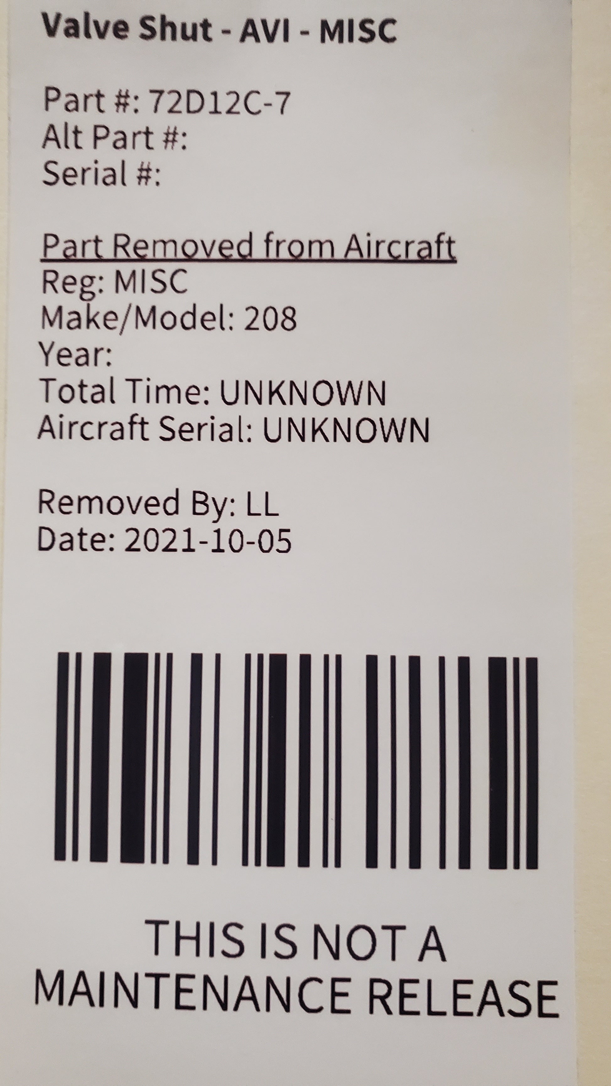 - Aircraft Serial Number: UNKNOWN