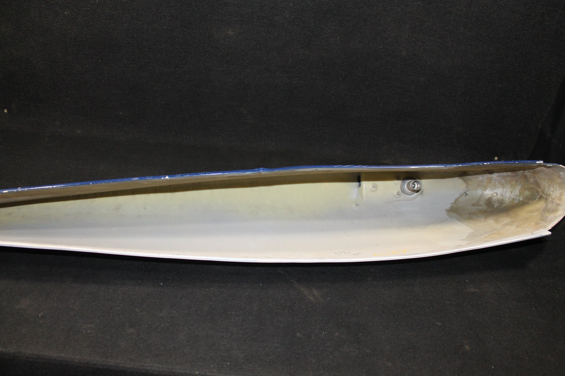 - Defects: cracked leading edge with fiberglass repair holding together
