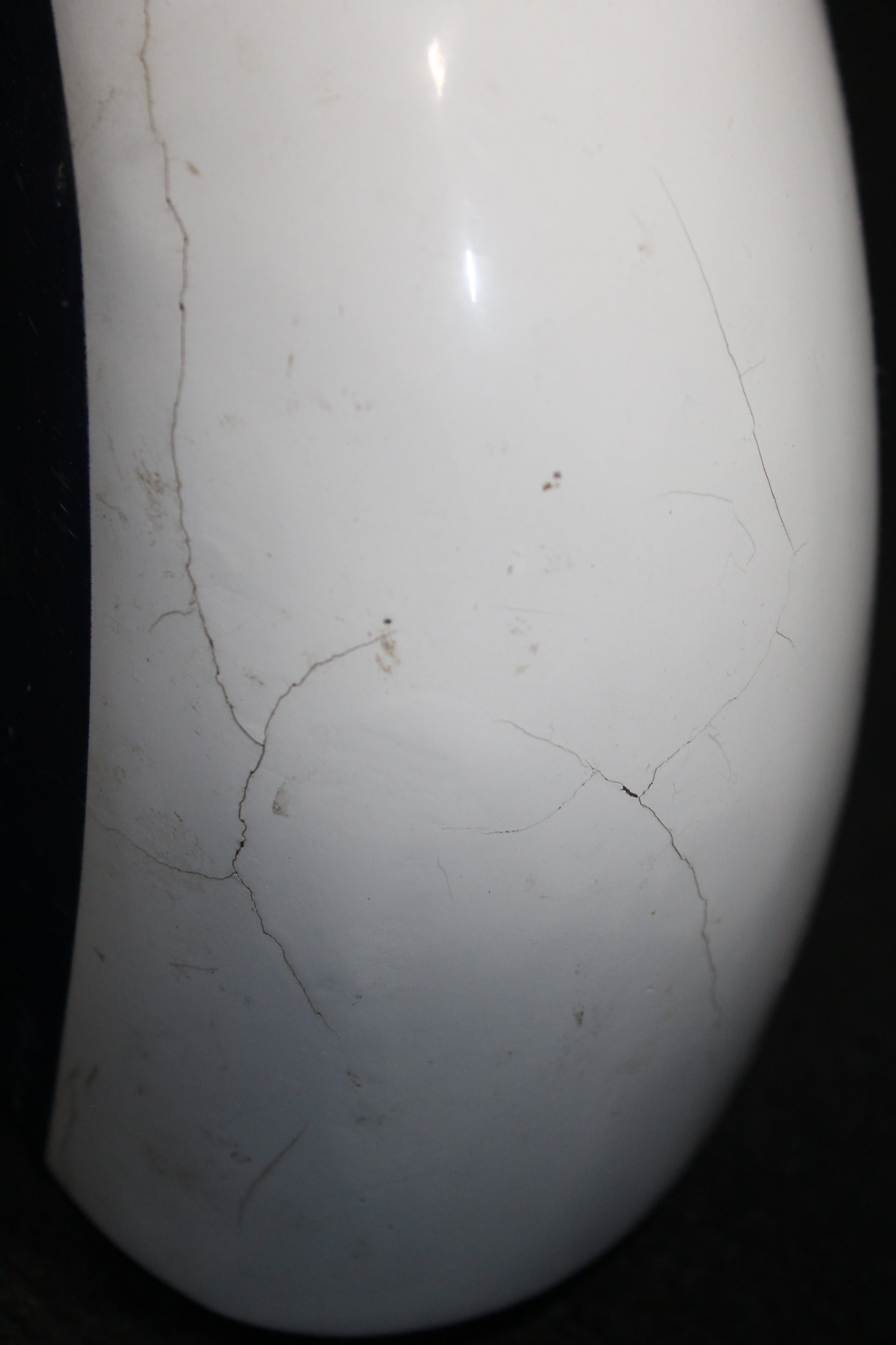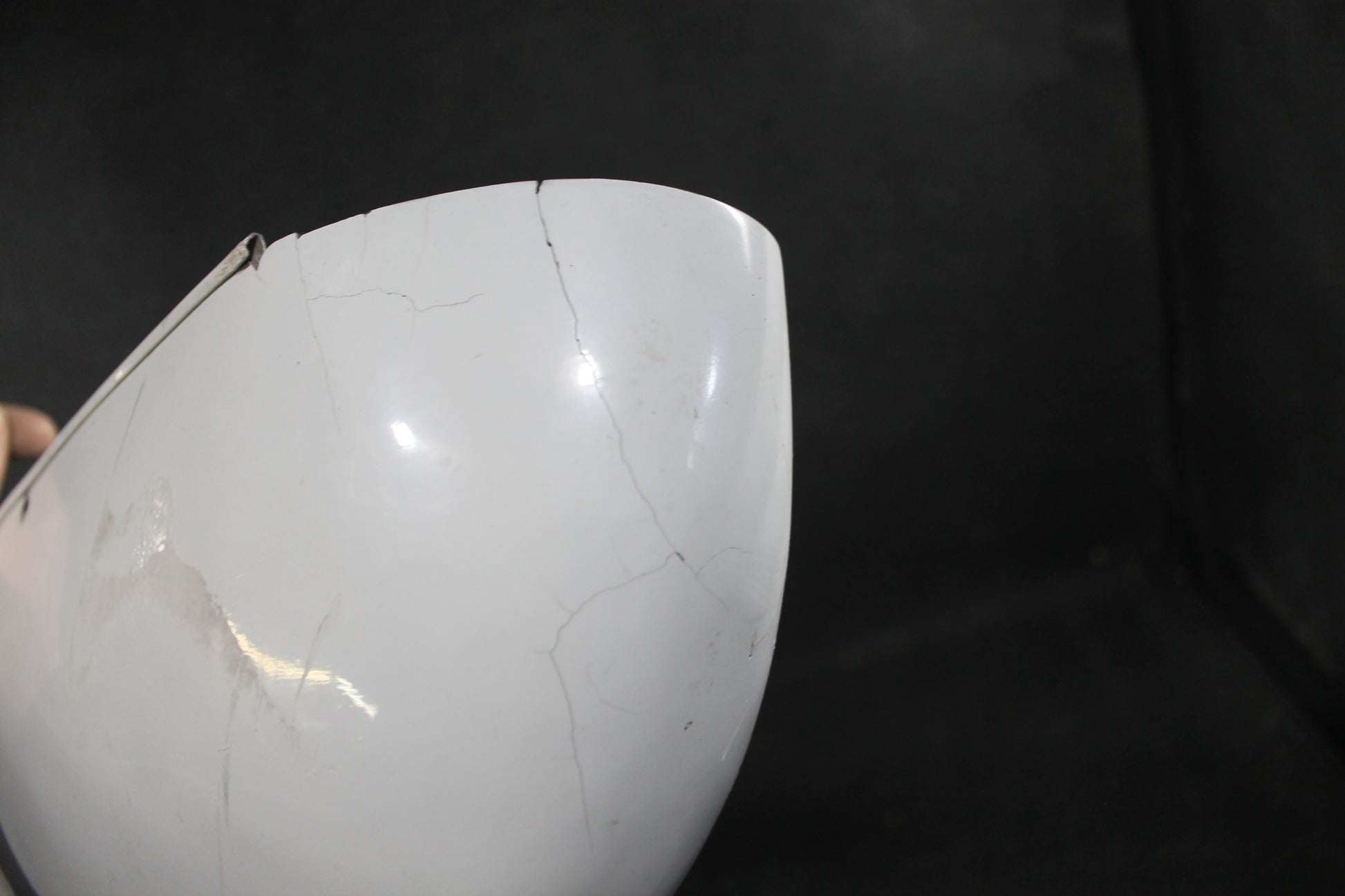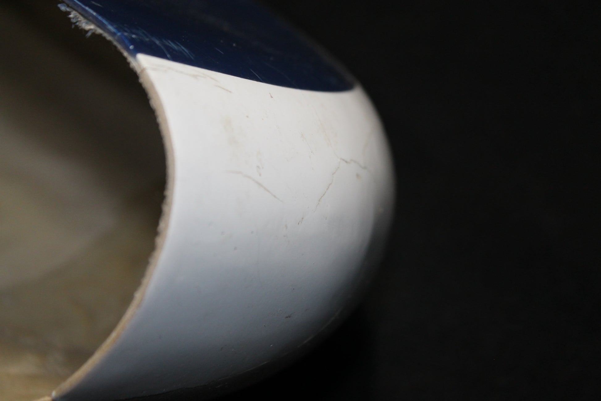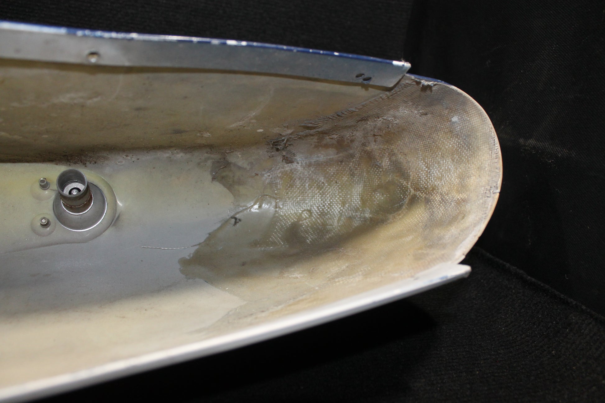 - Cracked leading edge with fiberglass repair holding together